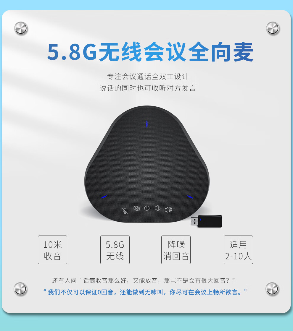 华畅视讯视频会议全向麦克风USB蓝牙无线阵列拾音器ZOOM腾讯会议设备级联一拖二三四5.8G桌面扬声器 HC-M10U(USB有线+无音箱)