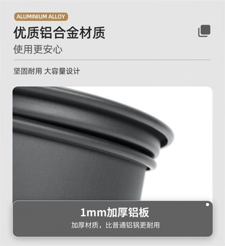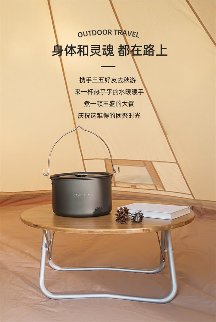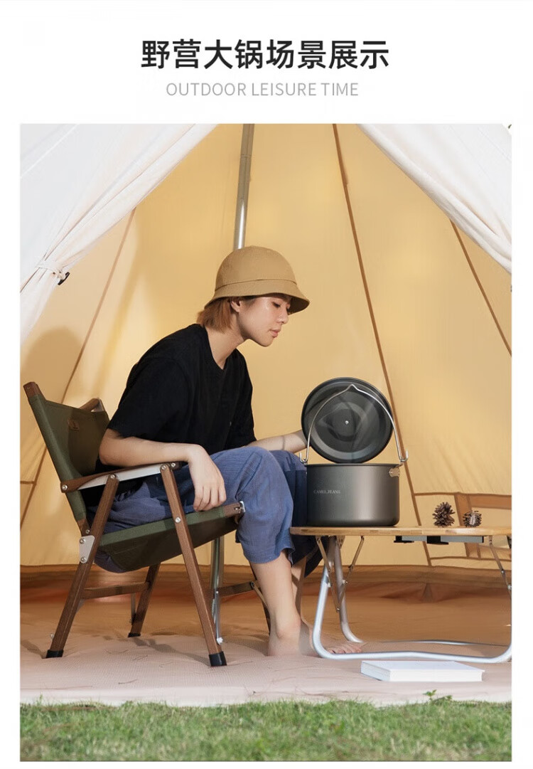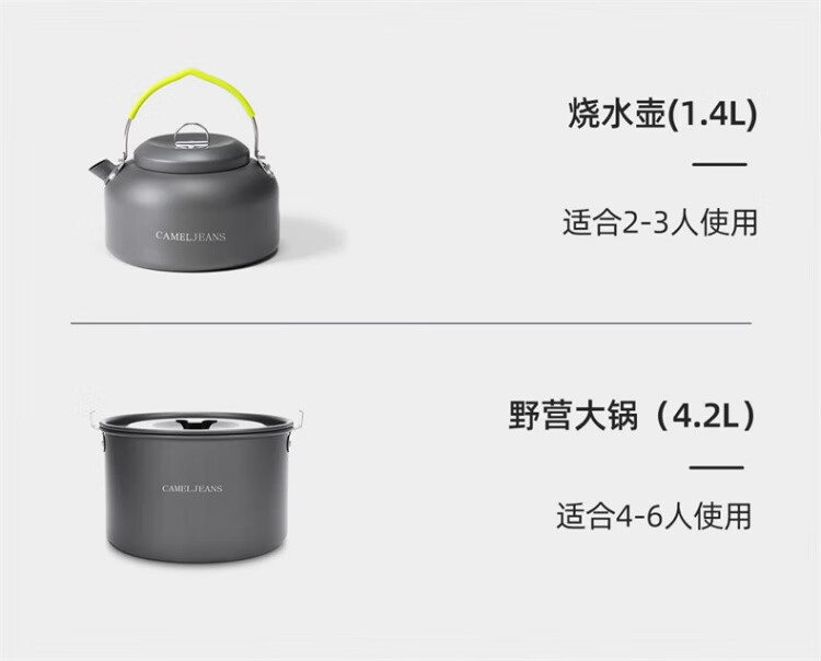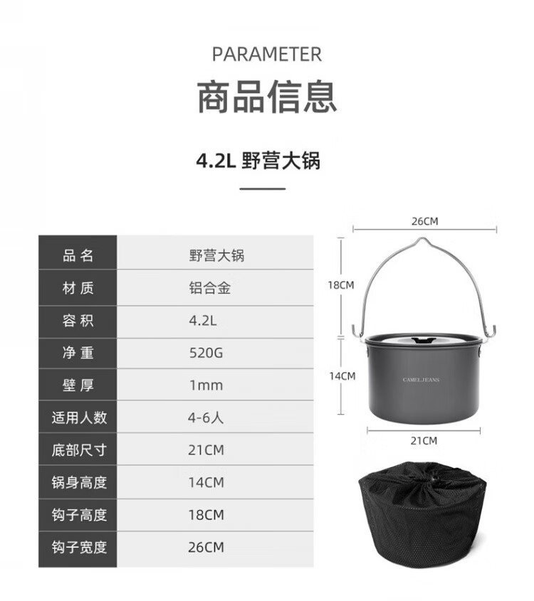 CAMELJEANS户外露营大锅铝合金野营锅煮锅大容量便携炊具 A2S31F106,金属灰野营大锅4.2L