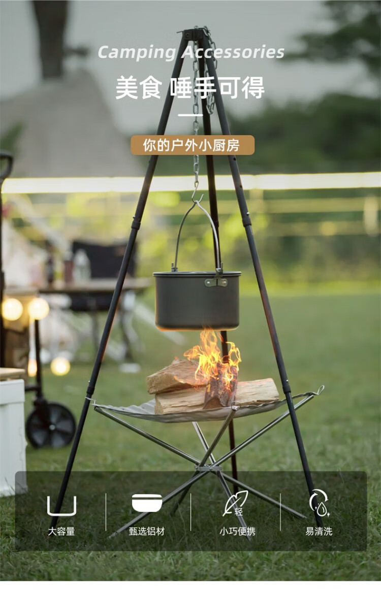 骆穂豆户外野营三脚架露营篝火便携野炊装备吊锅支架野餐烧烤 吊