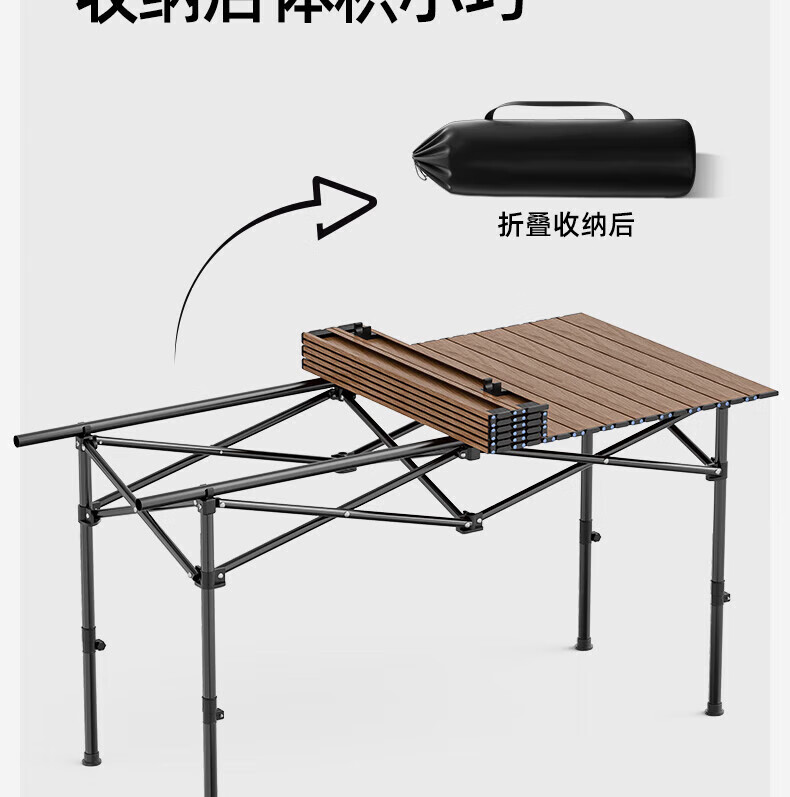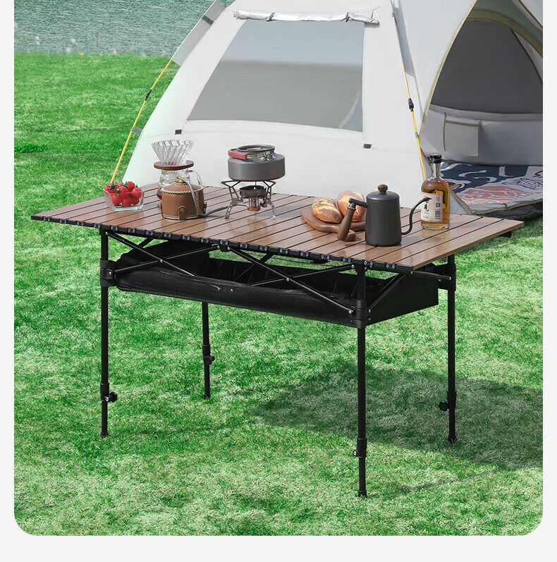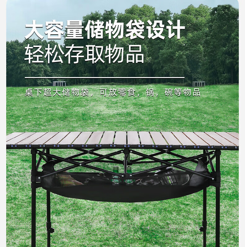 OIMG户外折叠桌露营烧烤家用餐桌便携式桌子野外蛋卷桌超轻收纳摆摊桌 【升降+网兜】蛋卷桌95cm 黑色
