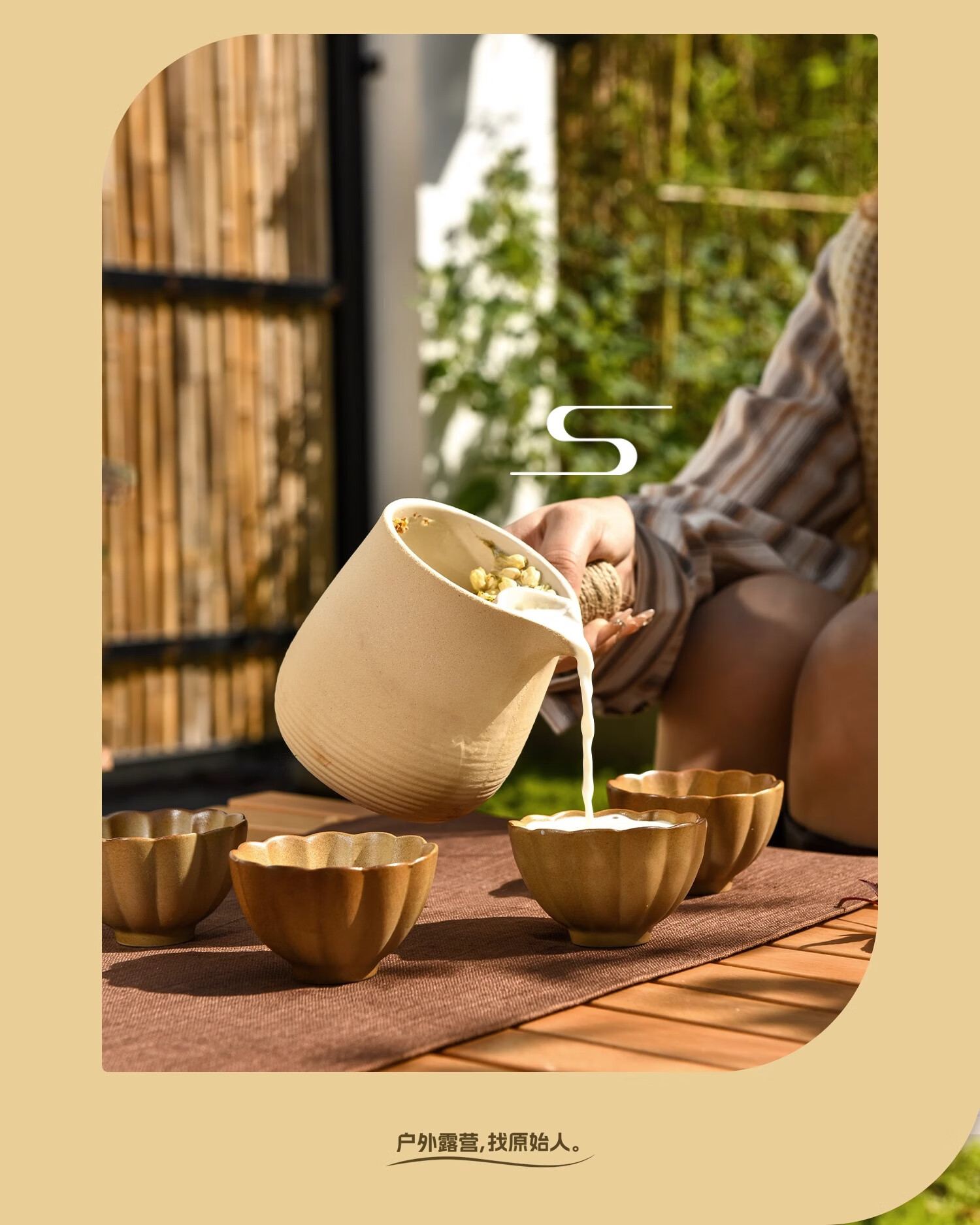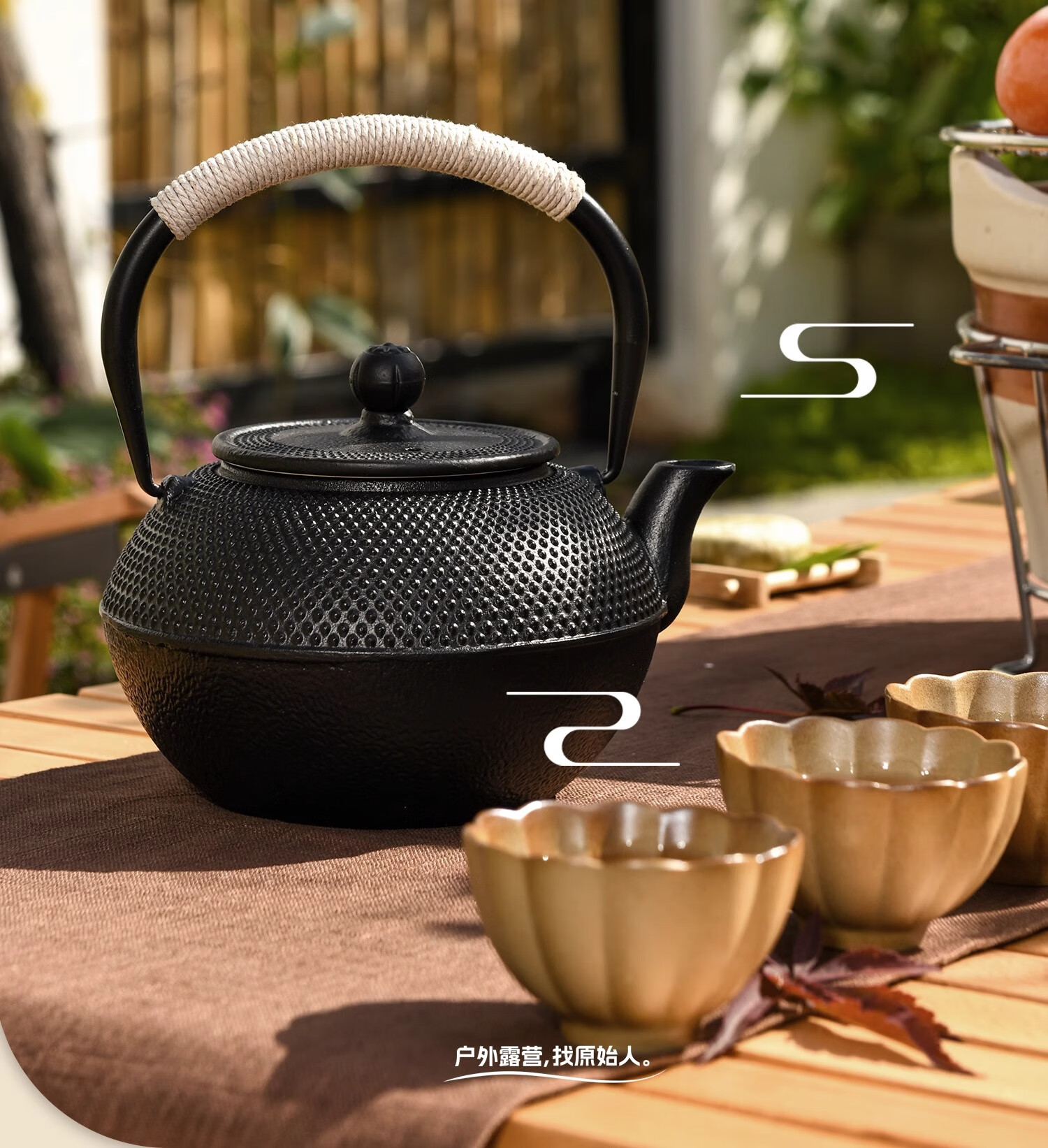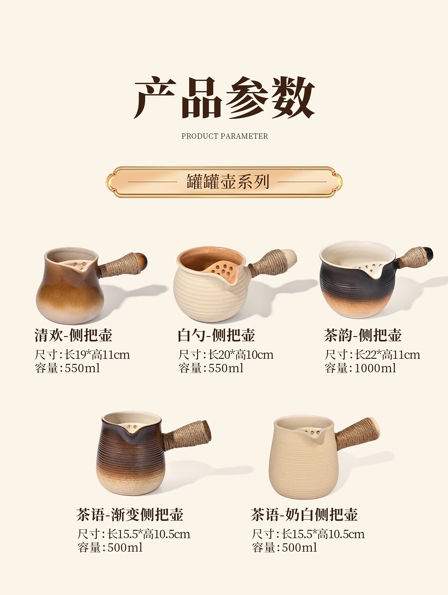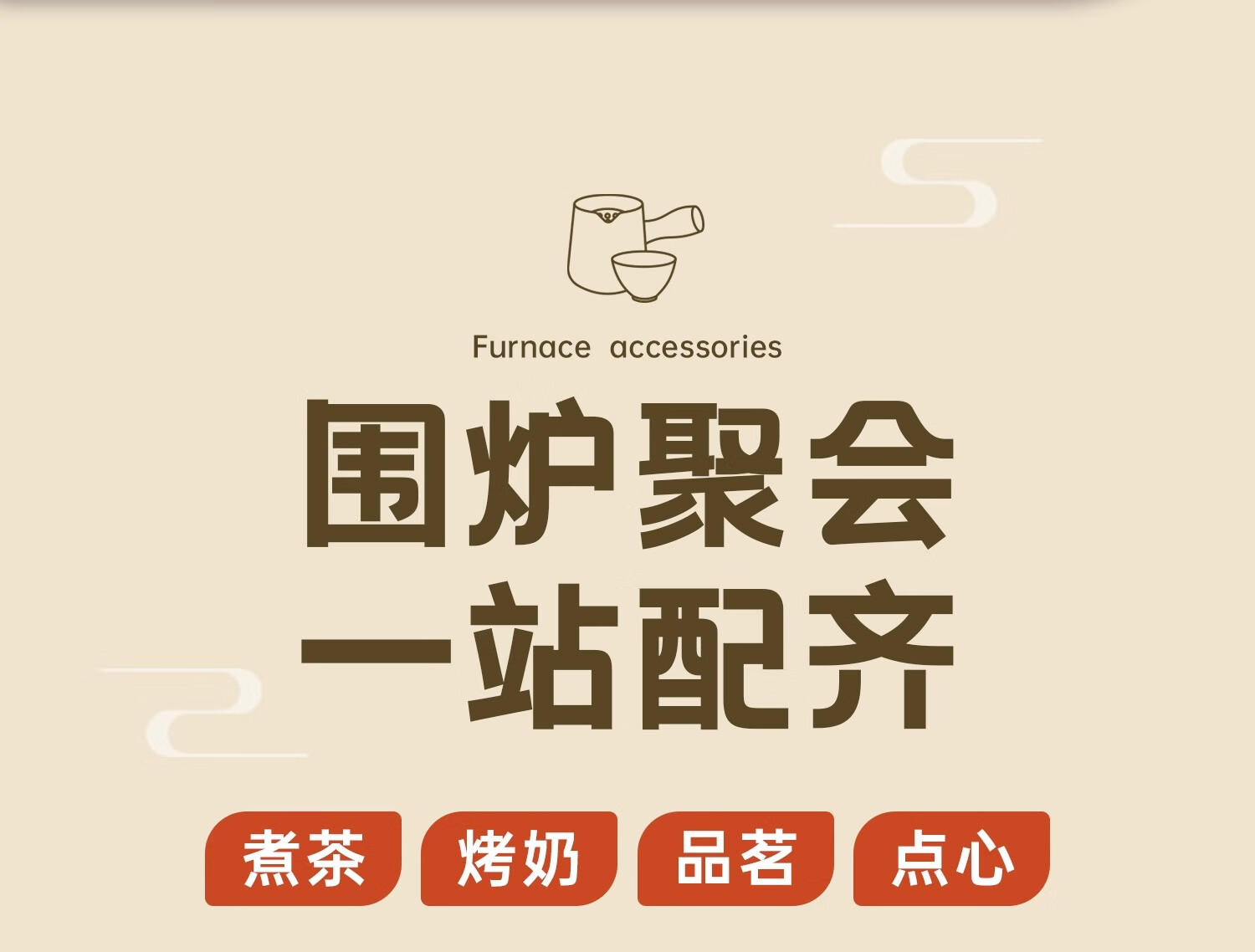 原始人围炉煮茶烤火炉套装器具全套工具家用室内烤奶茶罐罐茶杯茶壶配件 罐罐壶米白500ML