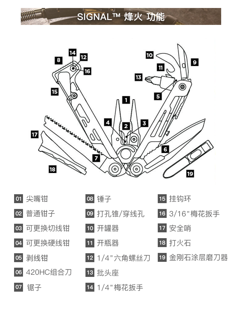 莱特曼莱泽曼烽火工具钳 Signal多功能钳子户外野生存装备随身EDC 湖绿银色