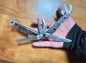 产品材质:材质很好,钢铁柔情吧,有细腻logo,有粗犷的铁锤,融合的很好。切东西很快,尽量不要小孩子玩。冻品,竹子、硬质纸壳是毁刃的三项,少碰不碰。刀、锯子都有卡扣设计防止回收伤手。 产品重量:重量合适,有分量感,少于半瓶矿泉水的重量。 适用场景:日常生活放在家里是个不错工具,外出户外绝对全能助手,锯木头、生火可以说是关键时候救命的工具。车上的安全带可以快速拉断。 男人情怀:青年时候就喜欢刀,因为穷,喜欢的都舍不得买。现在也不是富有,而是不想留下遗憾,男人对自己有时候要狠一点,斗志昂扬勇争先云云,总得有个实物寄托,道具要有个心仪的吧。