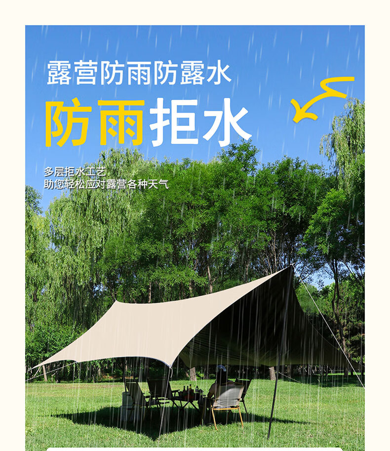 山之客遮天酷拓户外庇护所营地大型防雨防晒牛津布多功 450*300流沙金遮天 5-8人