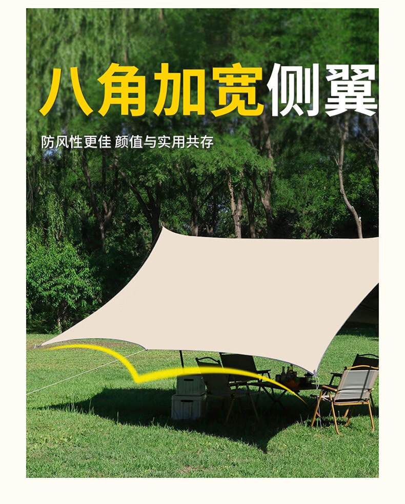 瑜品佳 黑胶天幕 户外露营装备野营野餐防晒八角蝶形遮阳棚 银胶【八角蝶形流金色3*4.5米】