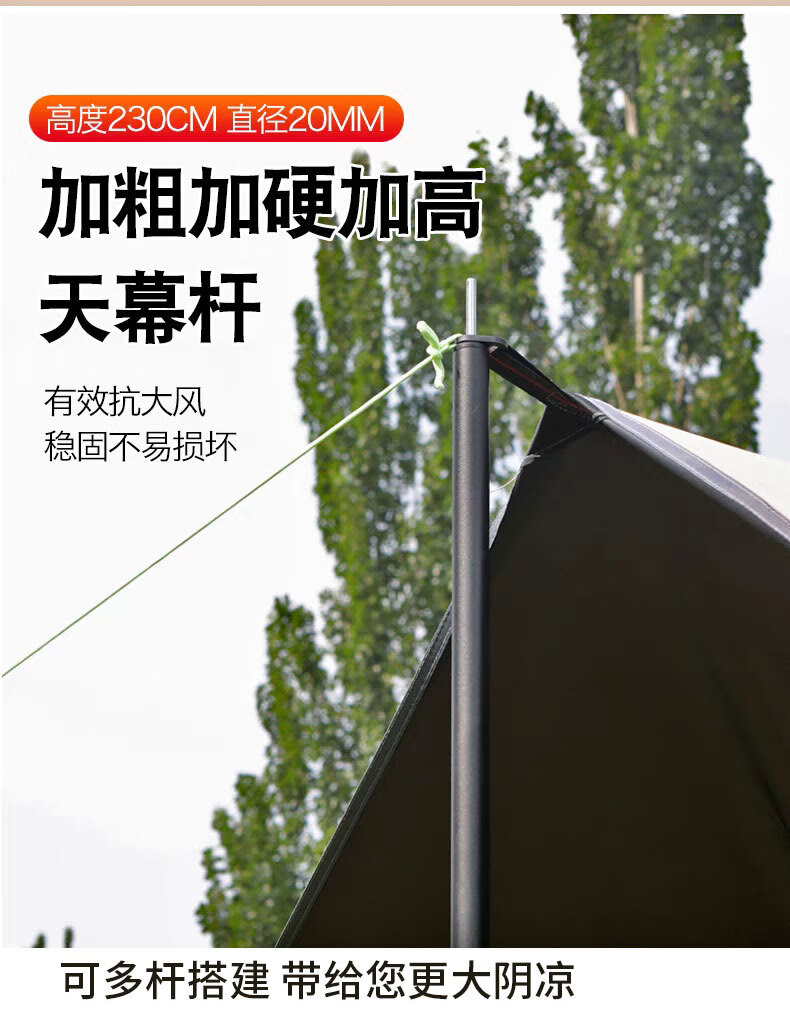 碳纤维天幕杆2.4米2.7米3M八节自由定位帐篷竿支撑杆野 天幕杆4.0米+顶针(单只装) 1-20人