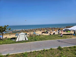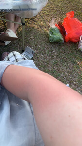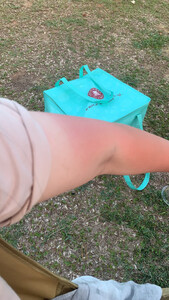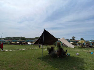 真的很离谱,这天幕只能坐四个人这样就不够宽了,坐哪里都被晒到,而且也没有防晒功能,同样的天气和地段旁边的人都没有晒伤成这鬼样子,关于大小 看看图三我的天幕(水桶左边)和周围别人的大小对比。