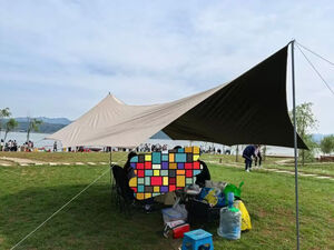 他平常就喜欢露营,特意买了这一款天幕,质量很好,很好搭,,尺寸也很合适,很喜欢。