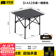 JEEP吉普露营桌蛋卷桌户外折叠桌椅子野餐摆摊烧烤旅行野炊便携式桌椅 方桌2-4人黑色【赠收纳袋】