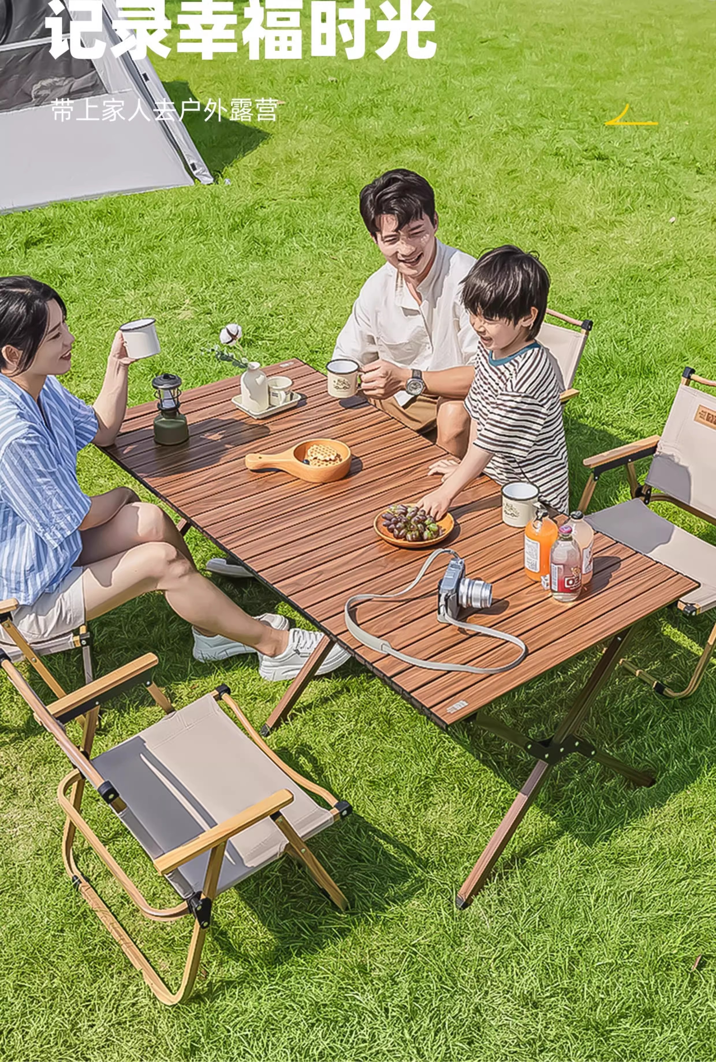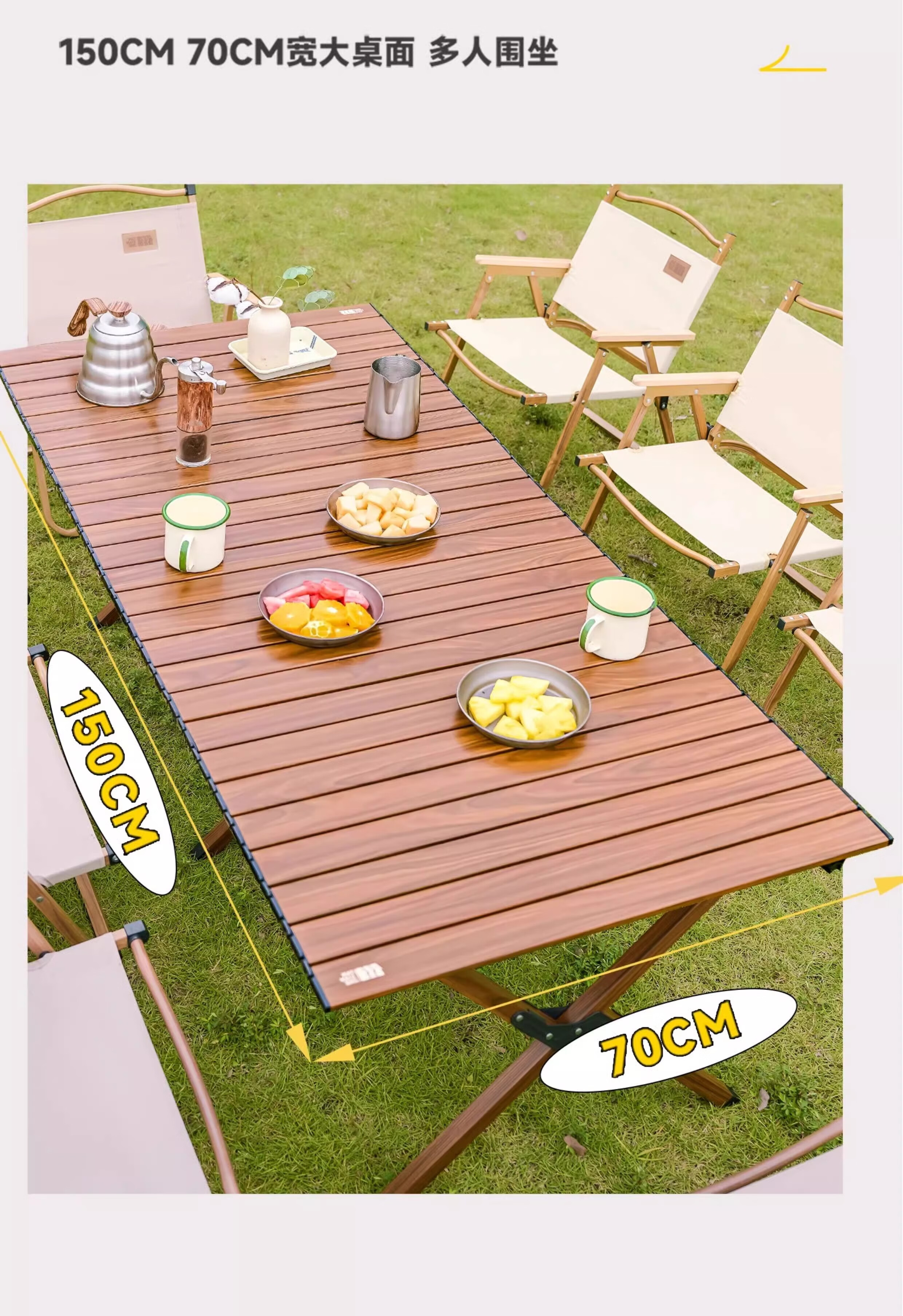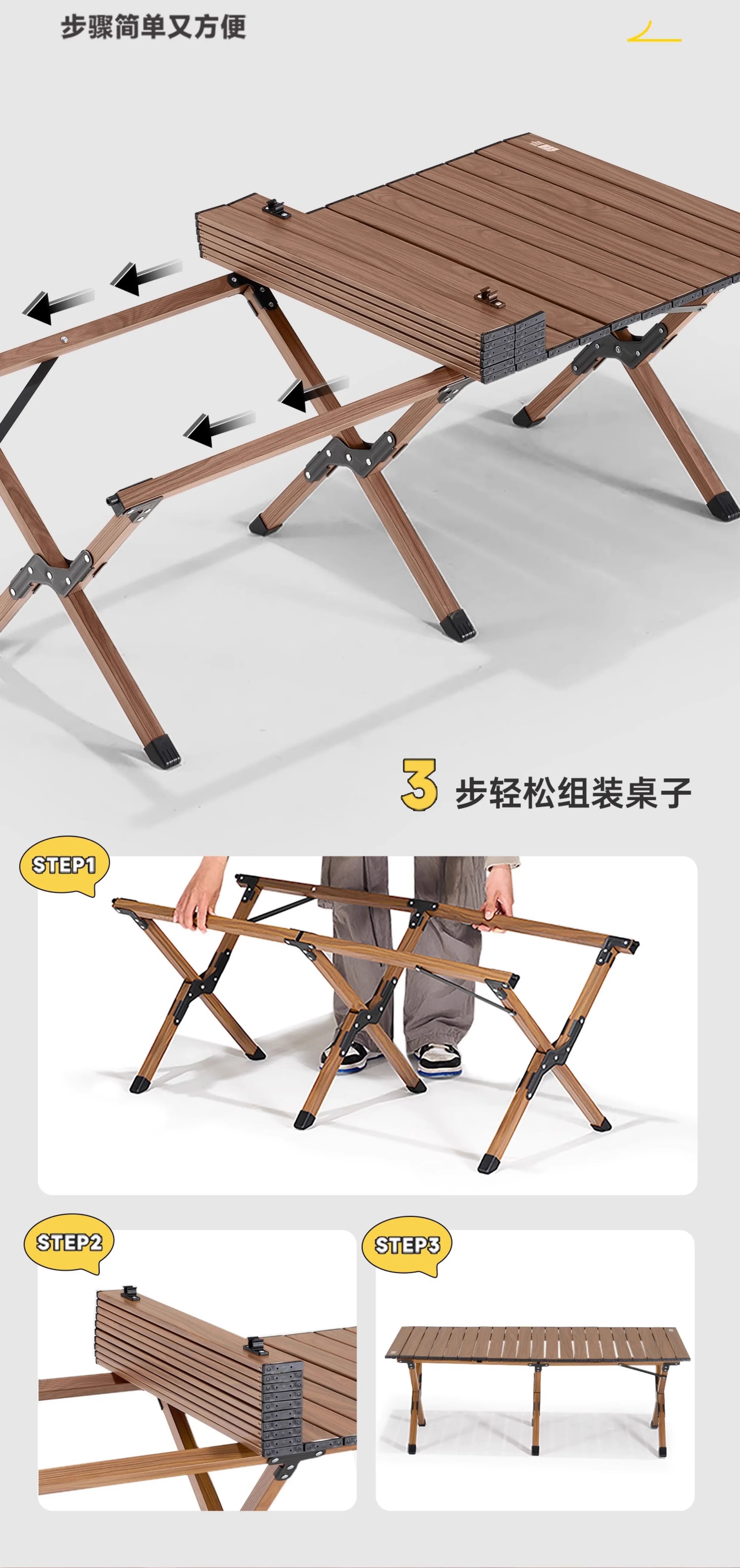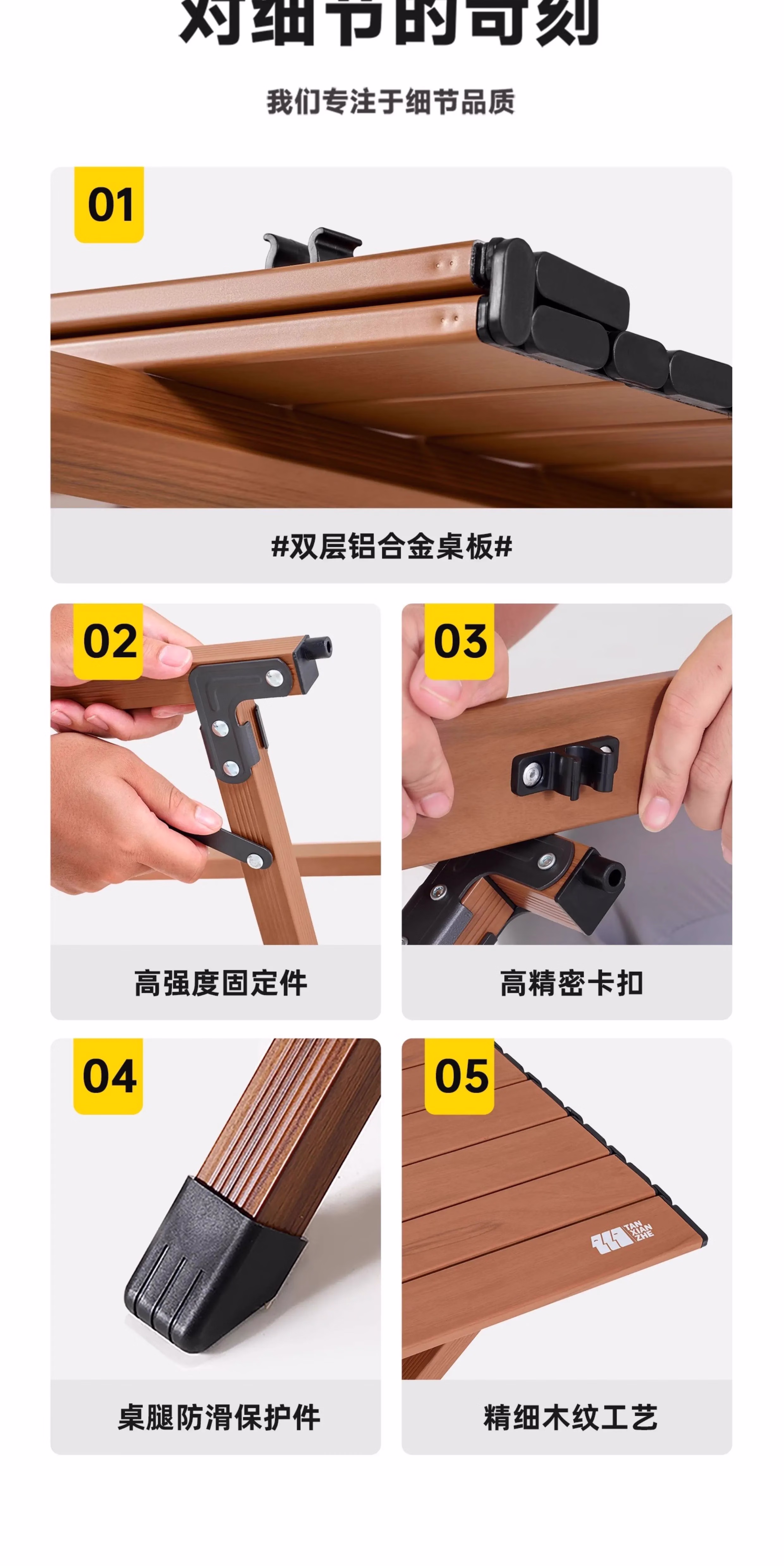 Guide Series户外铝合金折叠桌露营桌便携升降沙滩烧烤桌加宽桌自驾游车载桌 新 加宽金属 木纹黑色