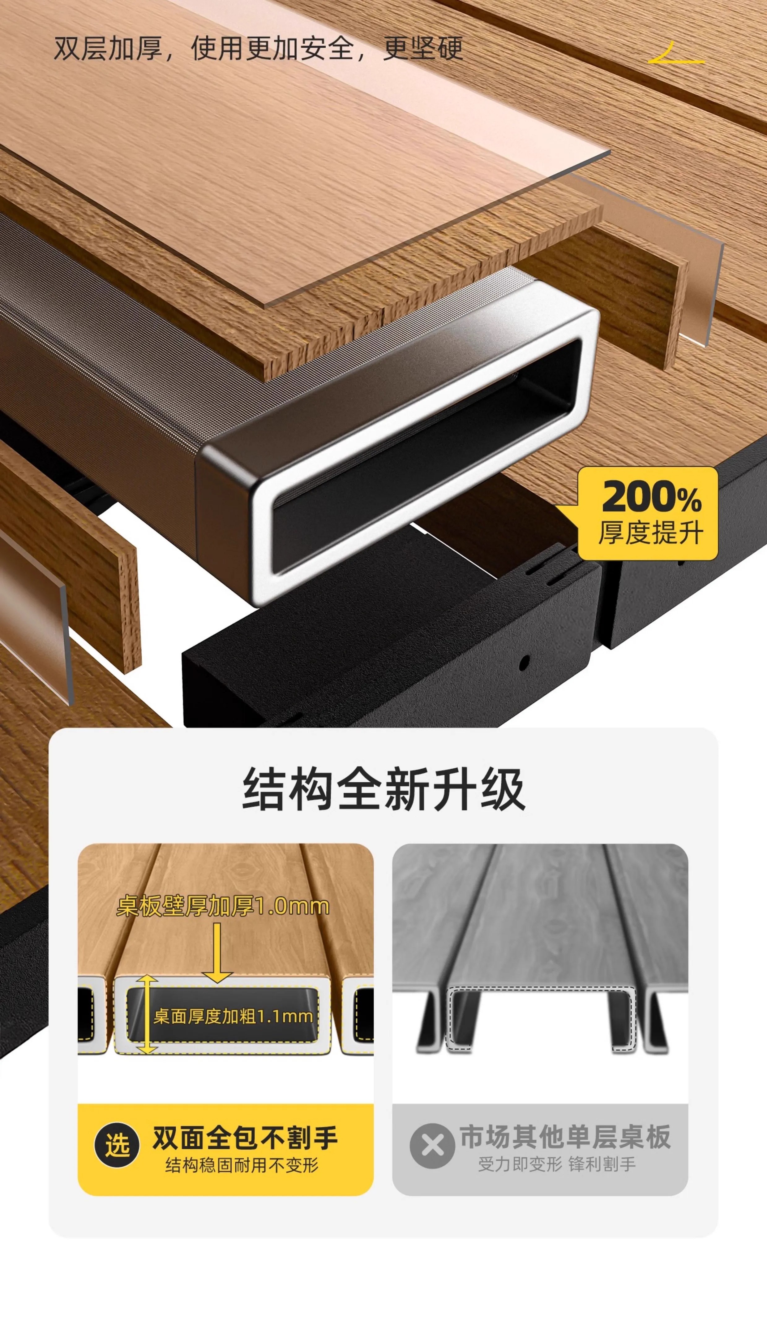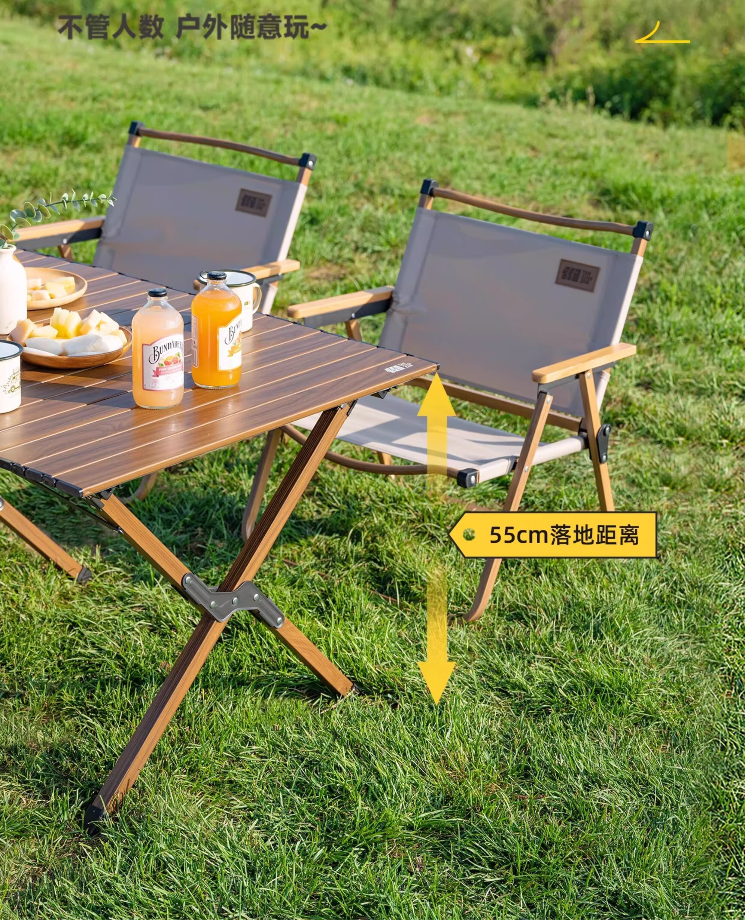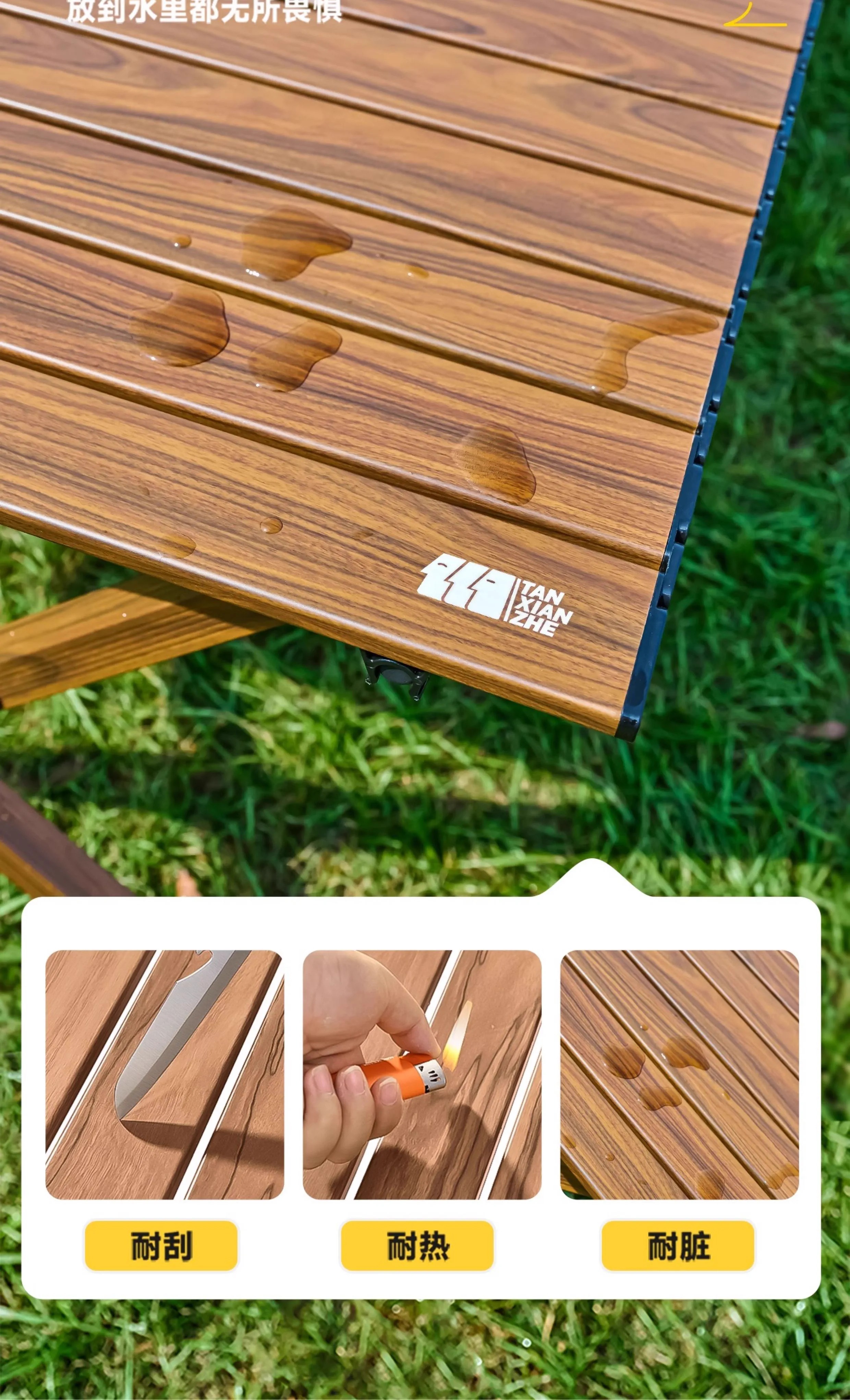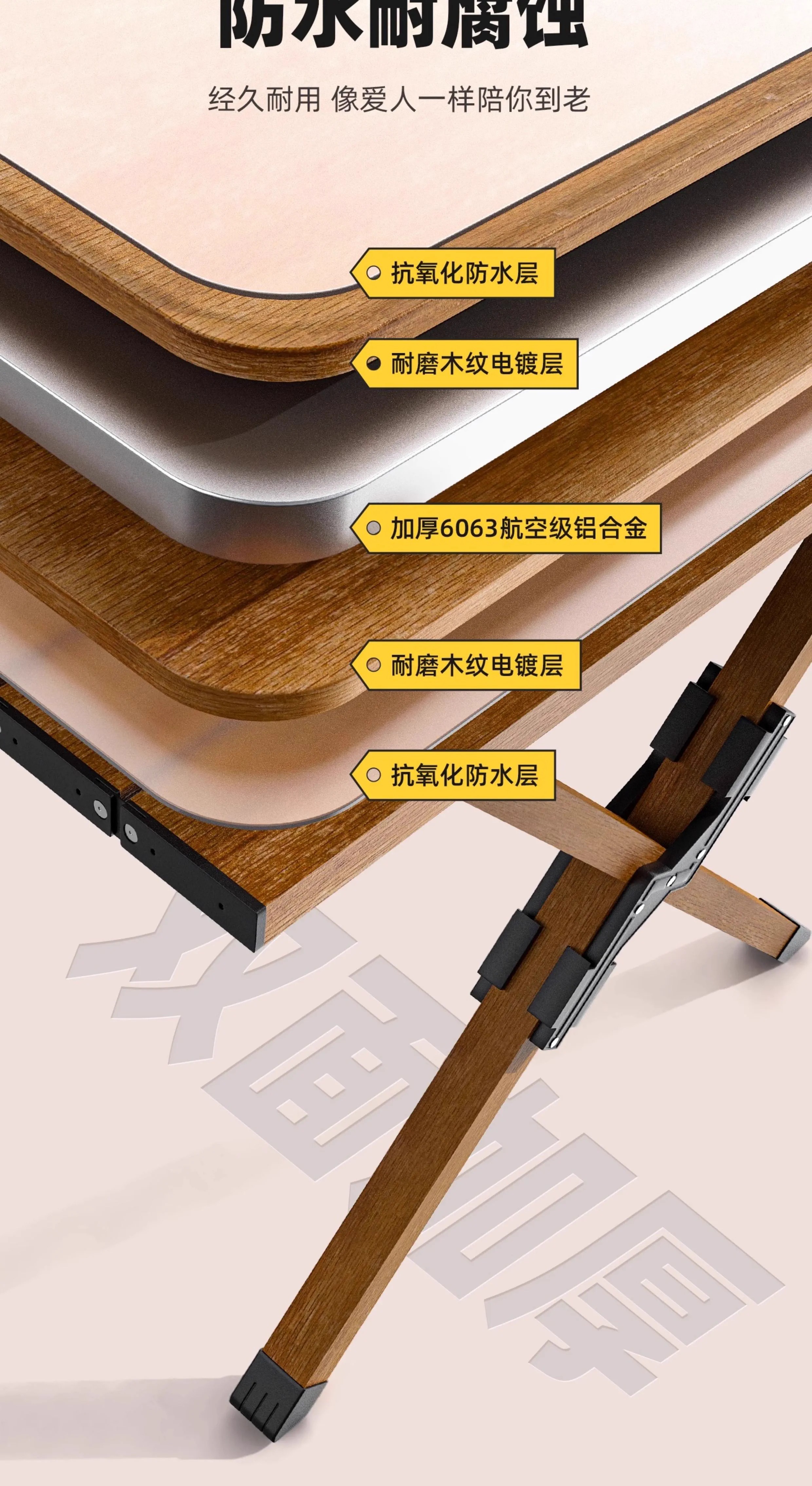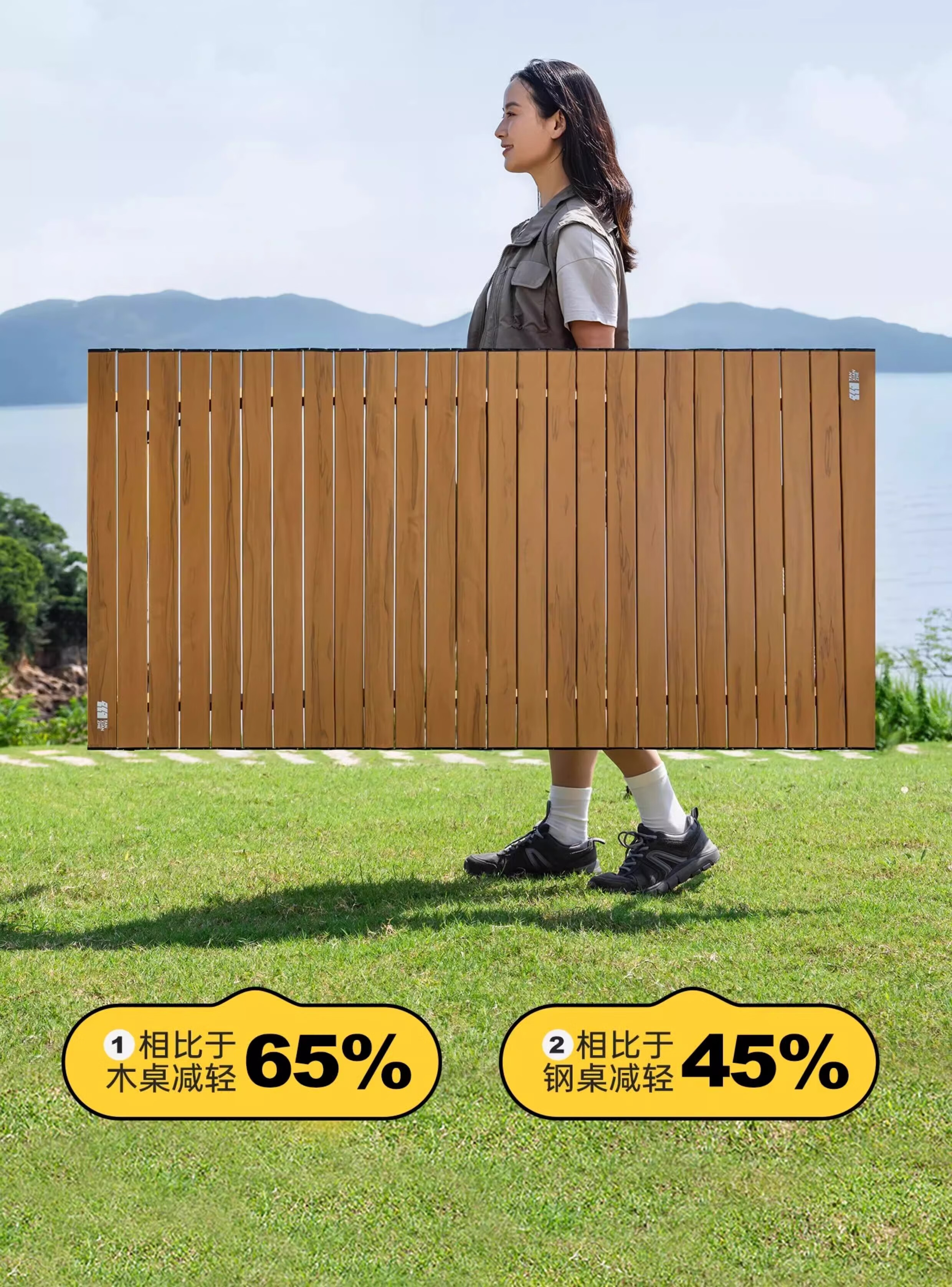 Guide Series户外铝合金折叠桌露营桌便携升降沙滩烧烤桌加宽桌自驾游车载桌 新 加宽金属 木纹黑色