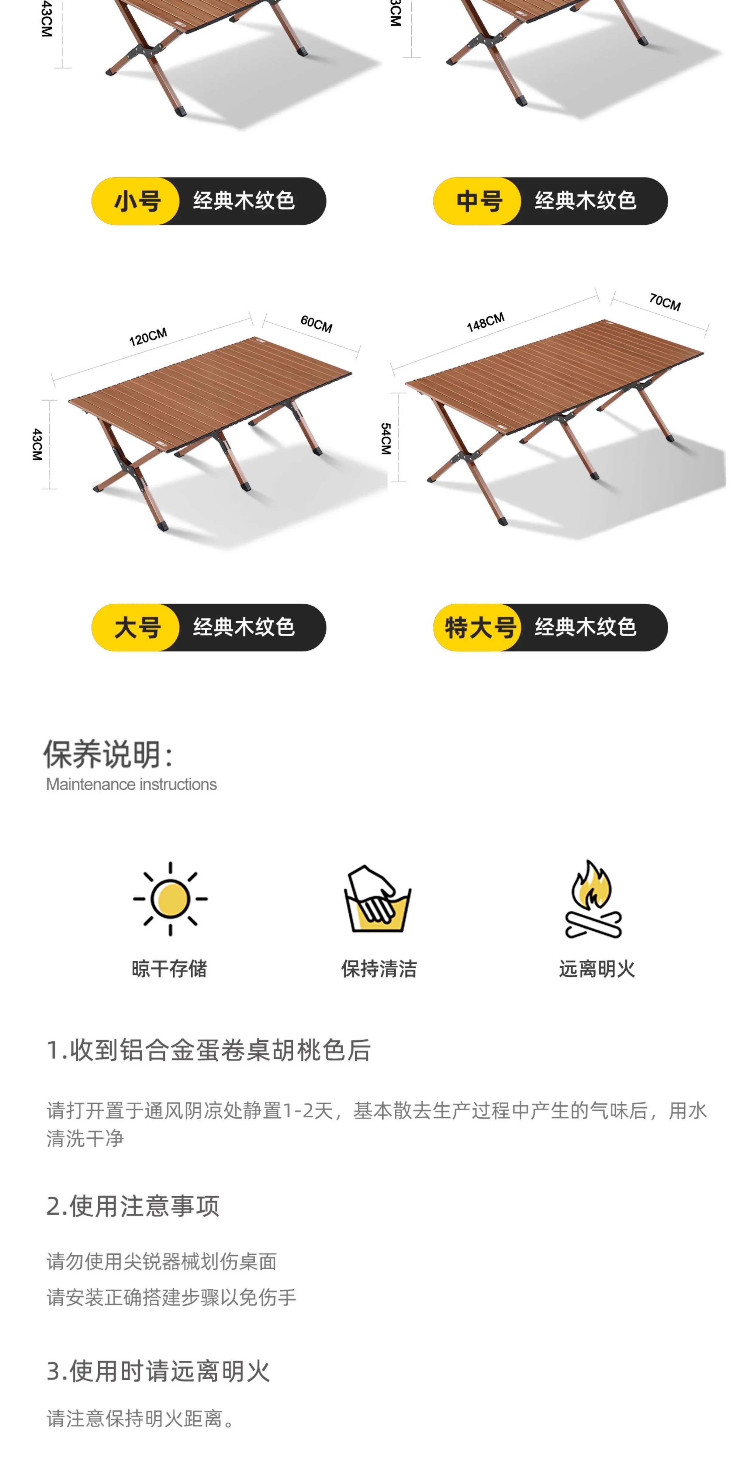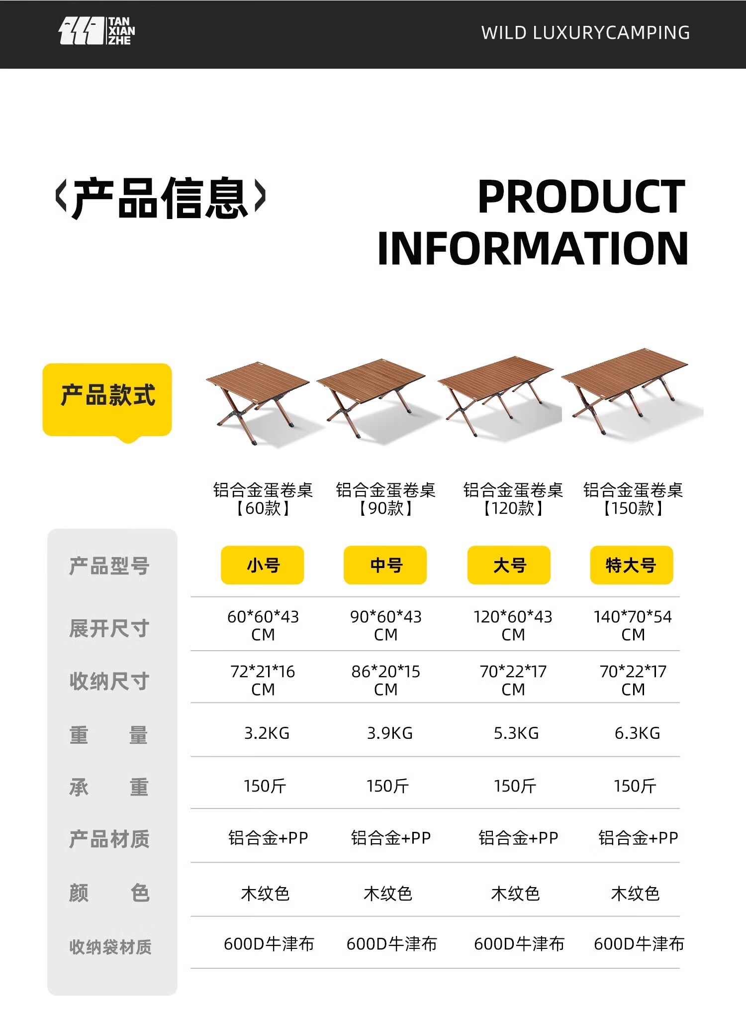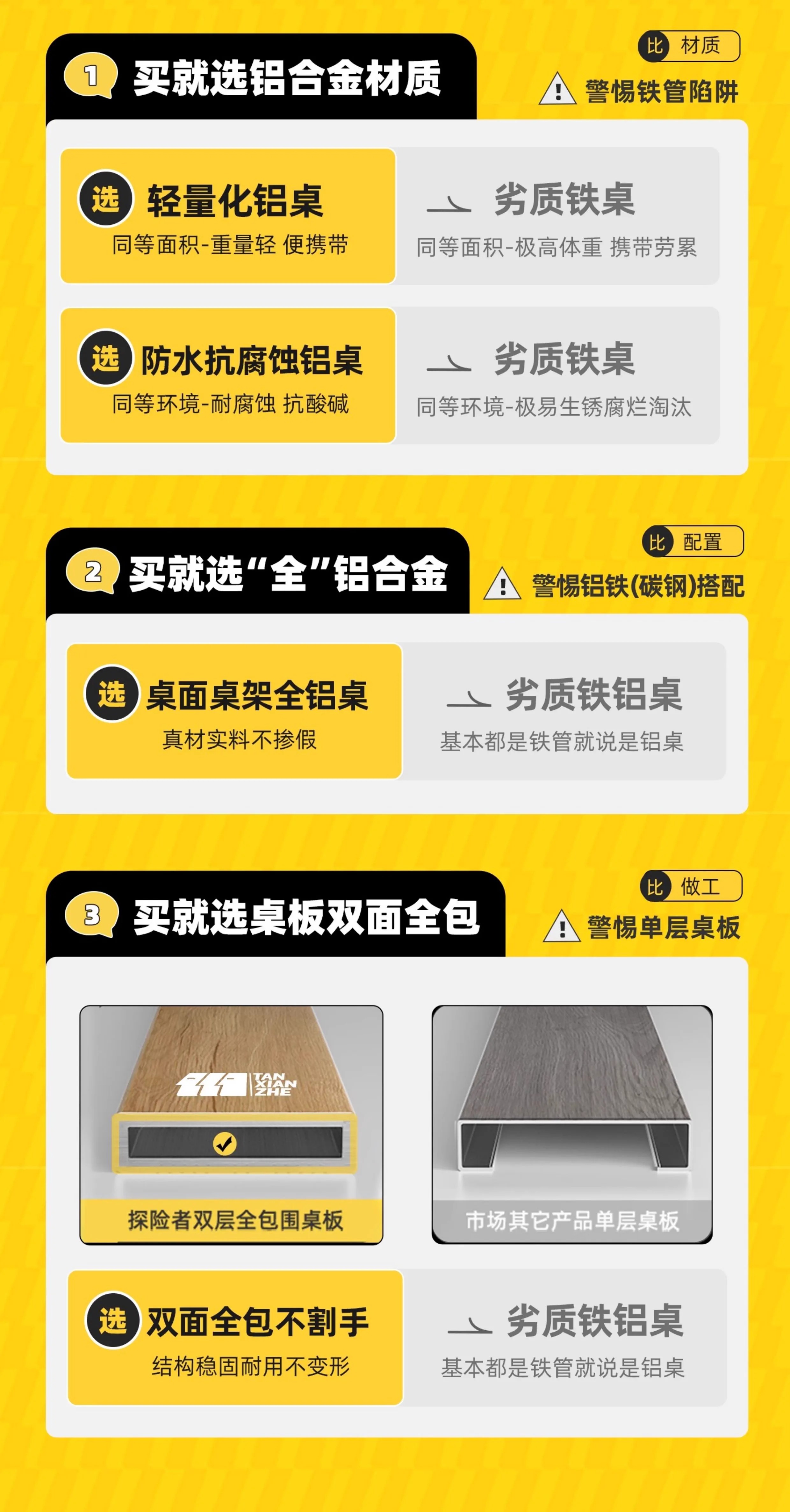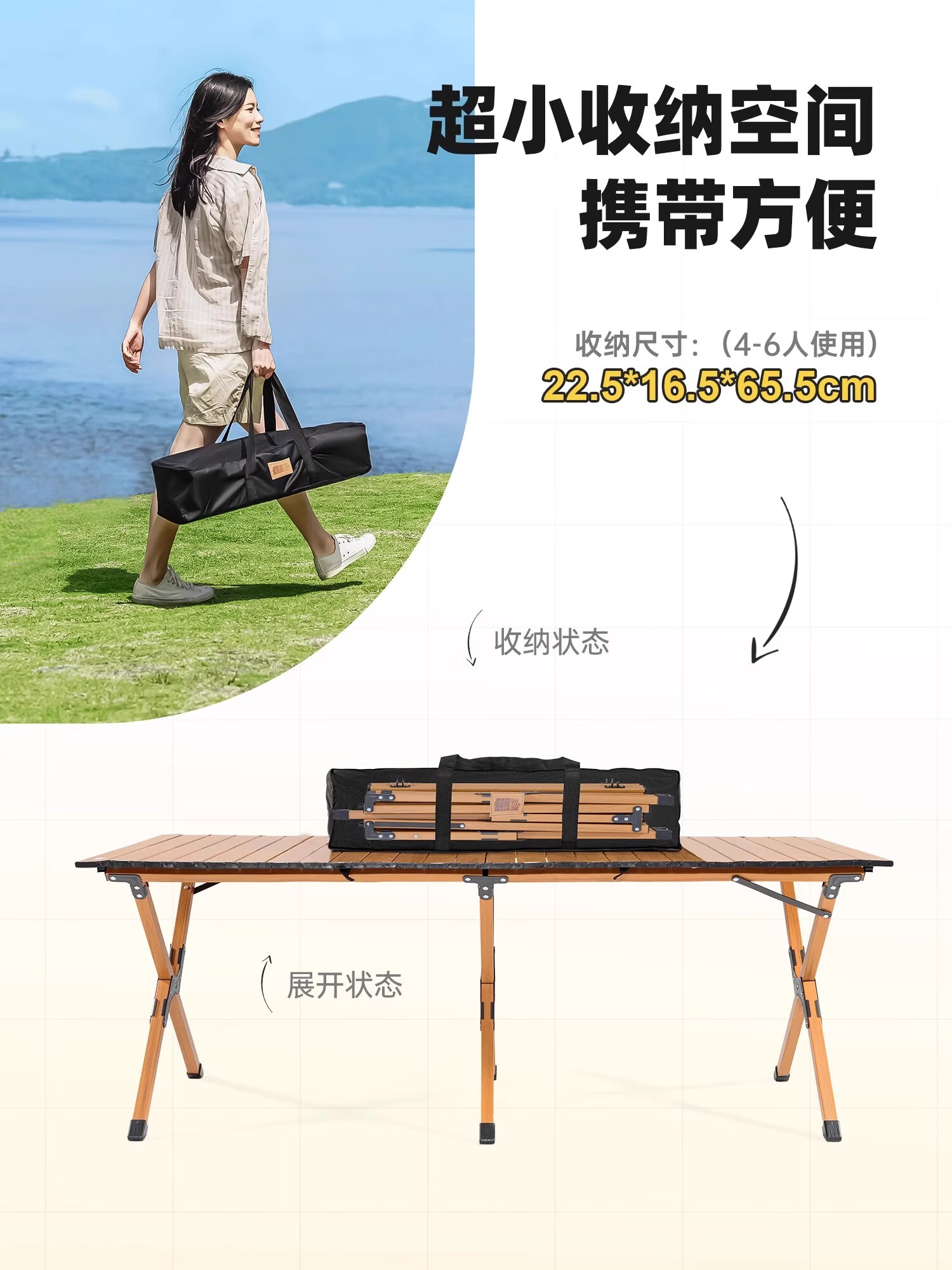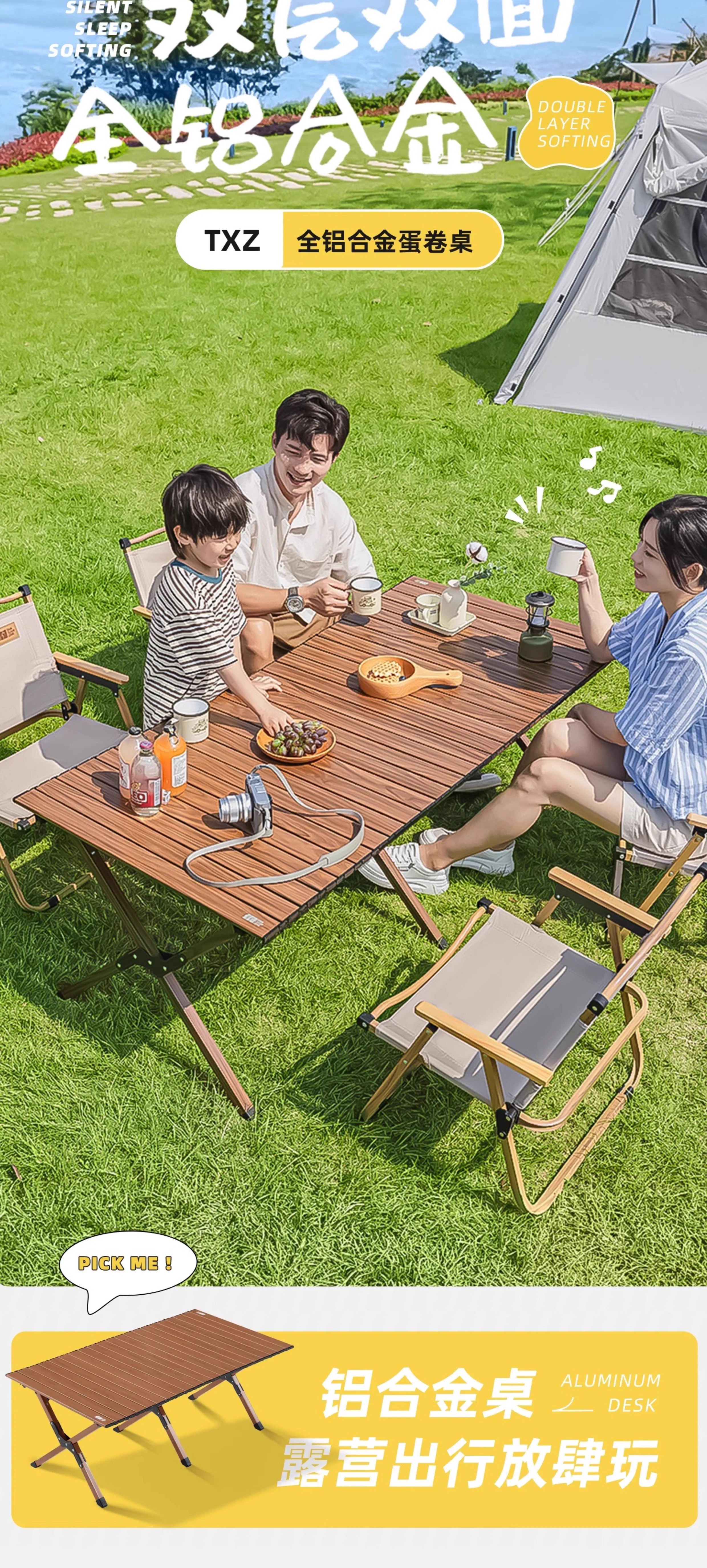 探险者露营桌椅户外铝合金蛋卷桌子露营便携式桌子折叠野餐野营野外装备 4-6人双层铝合金120cm+收纳袋