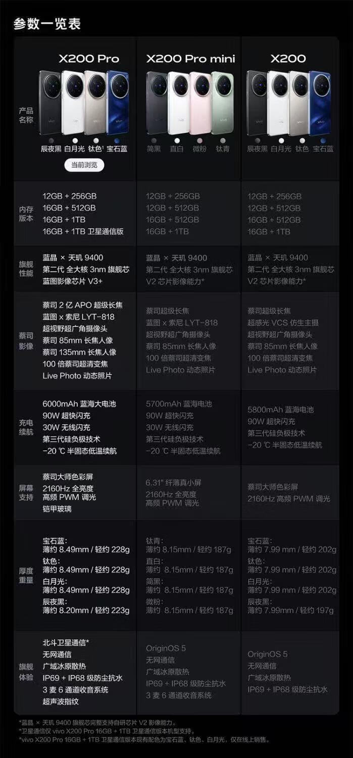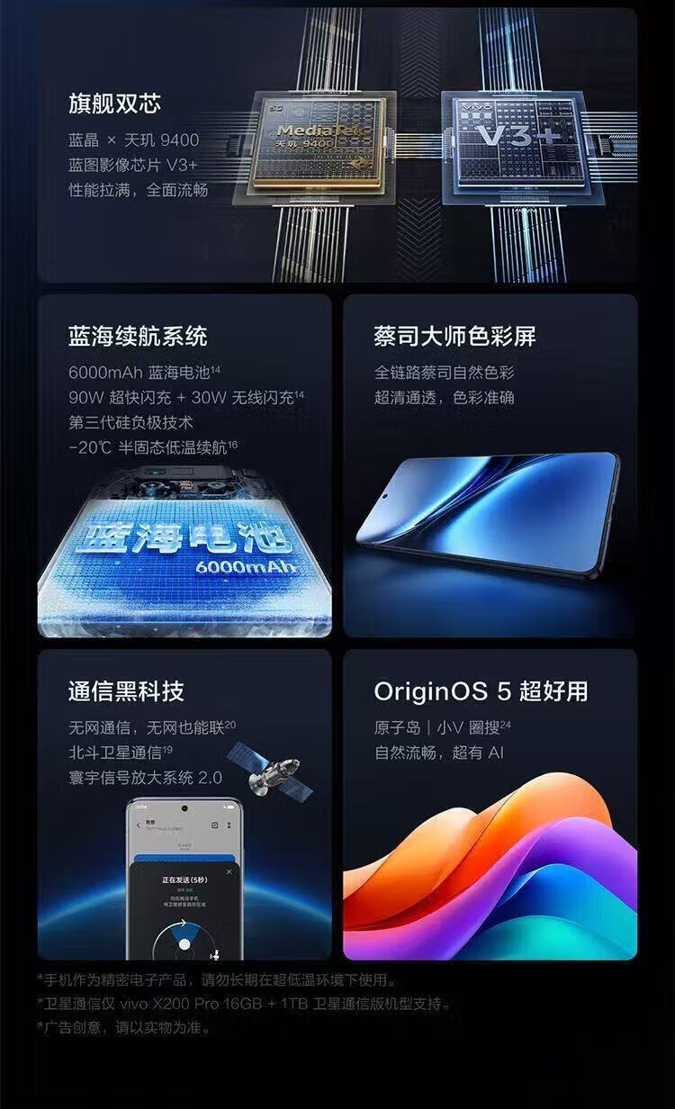 vivo X200 Pro 新品 蔡司2亿APO 超级长焦 天玑9400 拍照手机 宝石蓝 16GB+1TB 单机+原装快充+店保一年