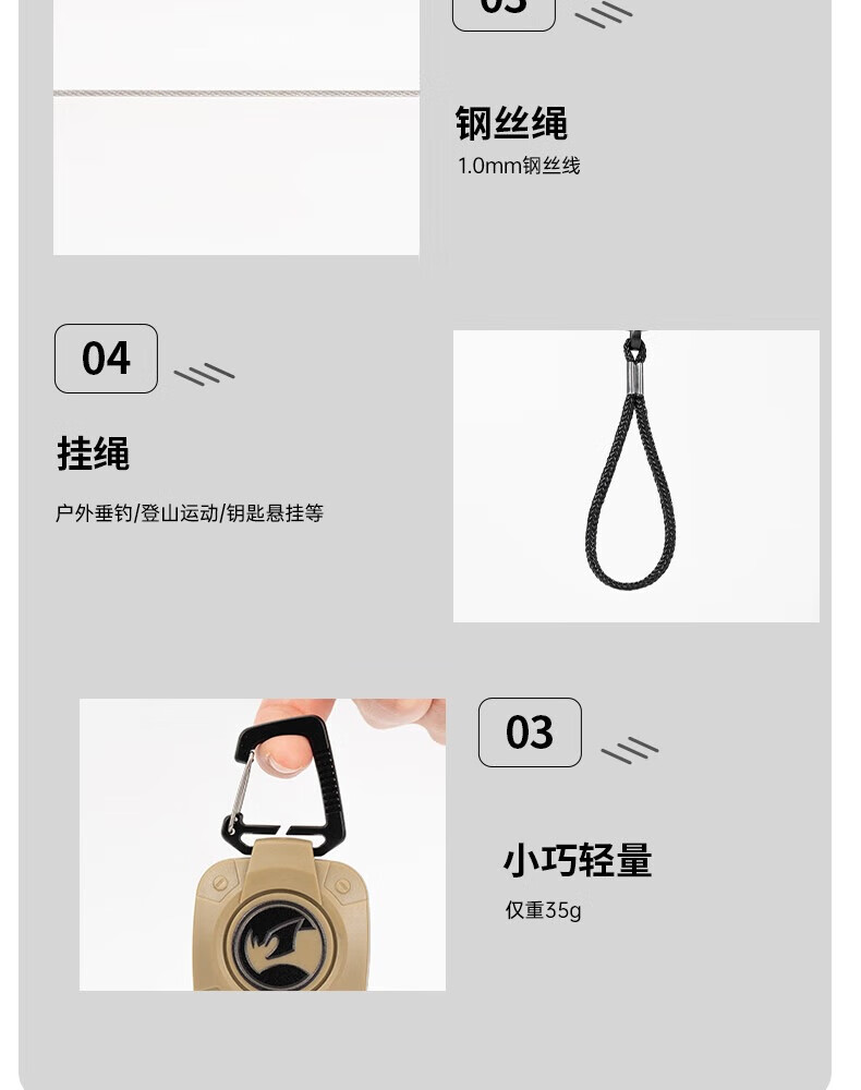 RHINO RESCUE犀牛救援户外露营伸缩扣登山扣易拉扣弹簧扣多功能挂钩登山扣钓鱼 卡其色伸缩扣单支装