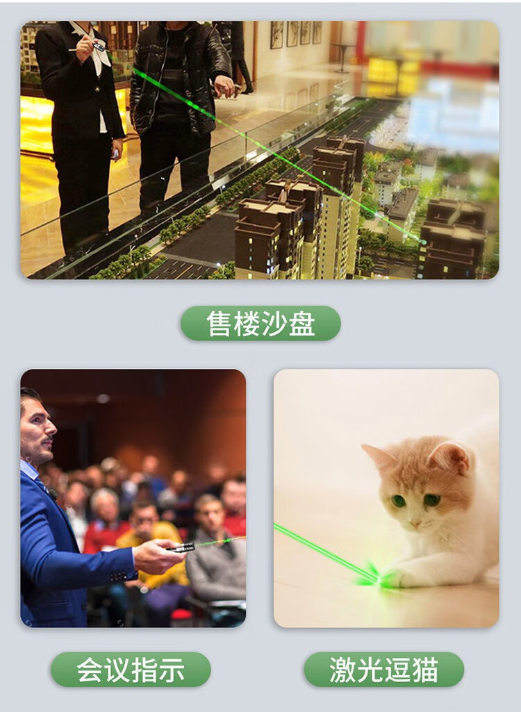 我看朋友买了一个绿色的激光笔,挺好用的,可以来唤醒感应灯,还能做演讲指示,也能标识地方,光源清晰,买的时候还送了挂绳,USB版,充电按照说明充满是蓝色~挺不错的一次购物,发货也快!点赞,我的朋友如果有需求,我也会发他这个店铺链接!一起玩激光笔~
