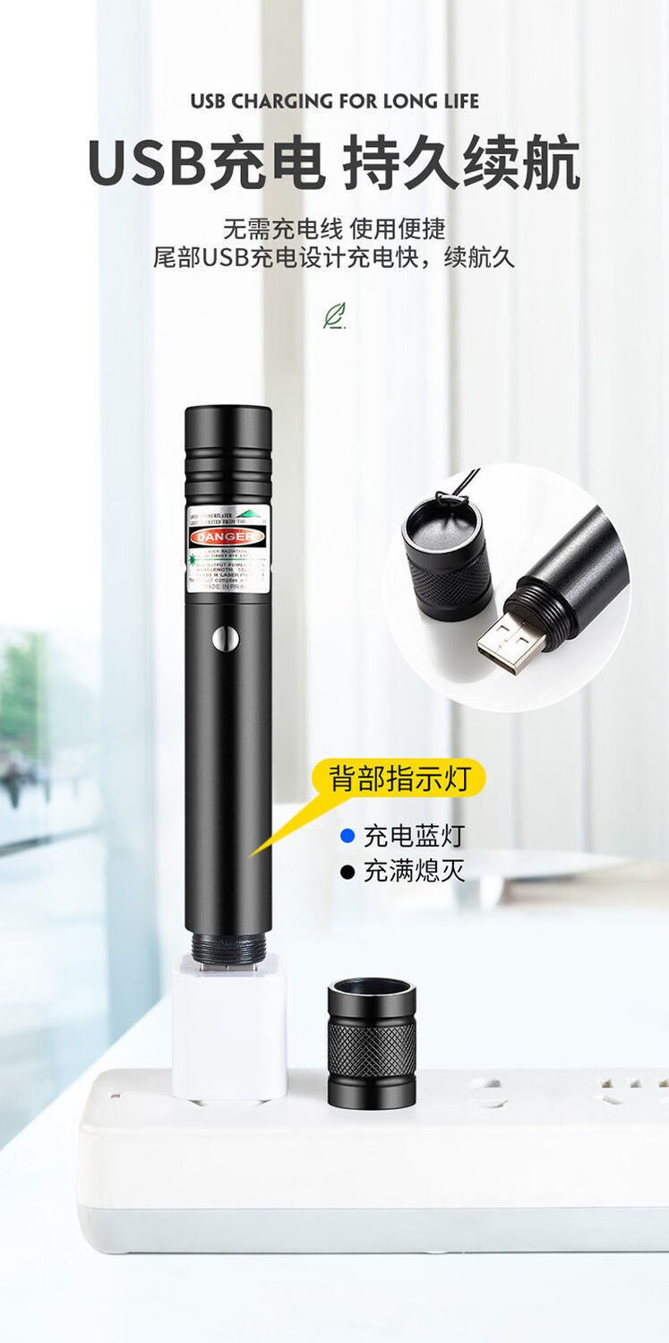 铁稳303大功率绿光激光手电USB充电远射激光笔灯售楼沙盘户外高亮指星 一电一充套餐