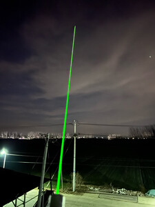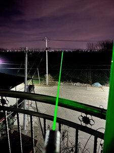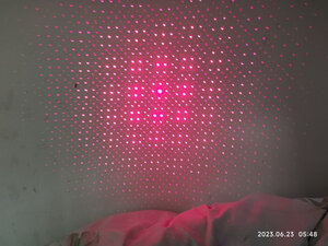 京东上购买了这款暗月激光笔,这款是内置充电电池,搭配一个满天星旋转头,墙上打出来的效果很好看,绿色激光非常清晰,很适合出去玩!