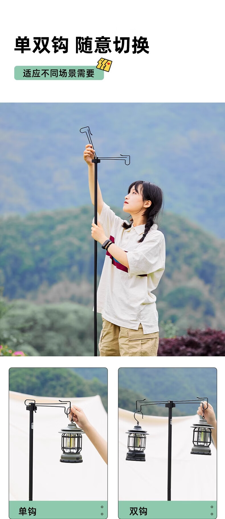 Guide Series铝合金户外灯架野露营折叠桌边灯杆支架伸缩杆挂小灯单钩挂灯野外 桌边二节单钩灯架-黑色