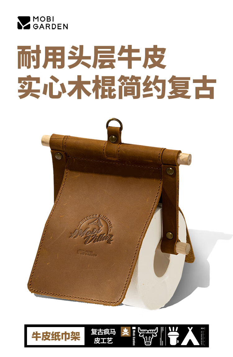 牧高笛(MOBIGARDEN)纸巾架 户外露营牛皮纸巾架厨房浴室便携吊挂式纸巾盒 野牛棕(不含纸巾)