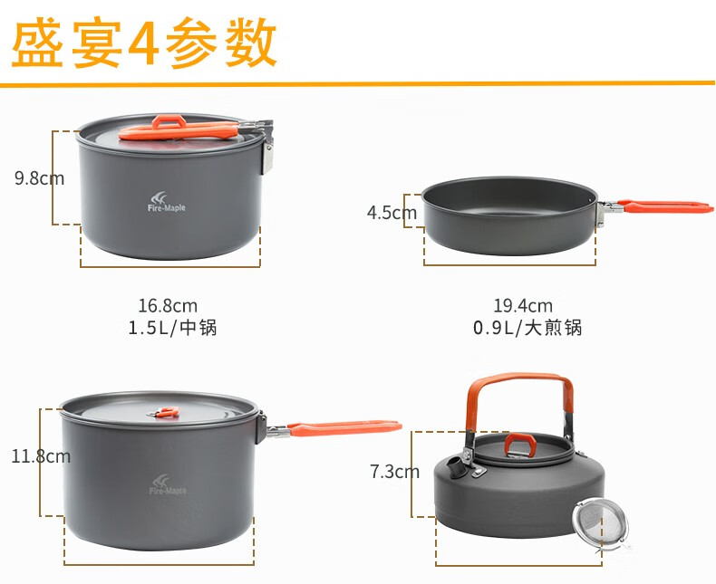 火枫(FIRE-MAPLE) 户外盛宴4套锅特别版 气炉锅具 野营便携折叠野外野炊野餐炊具餐具套装 盛宴4特别版 擎天炉套锅(全套齐全)