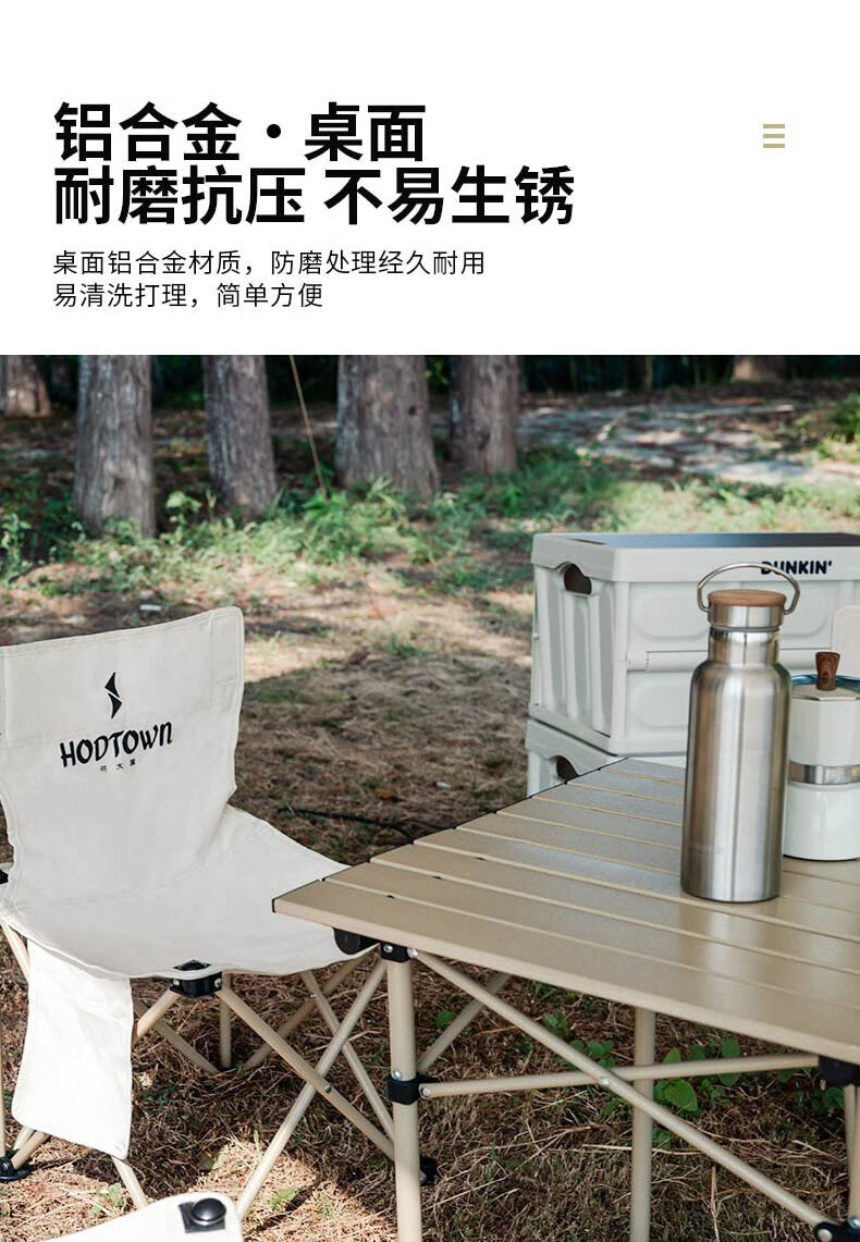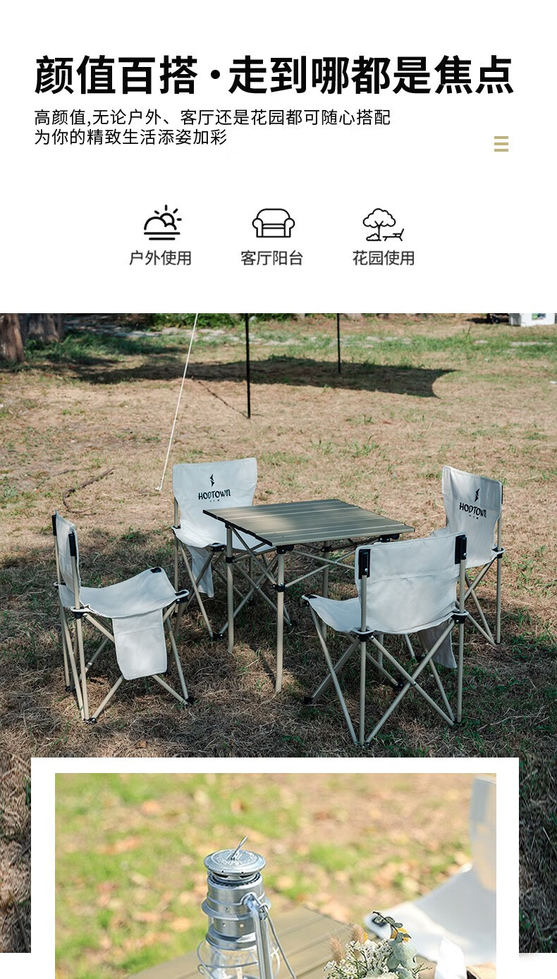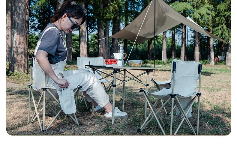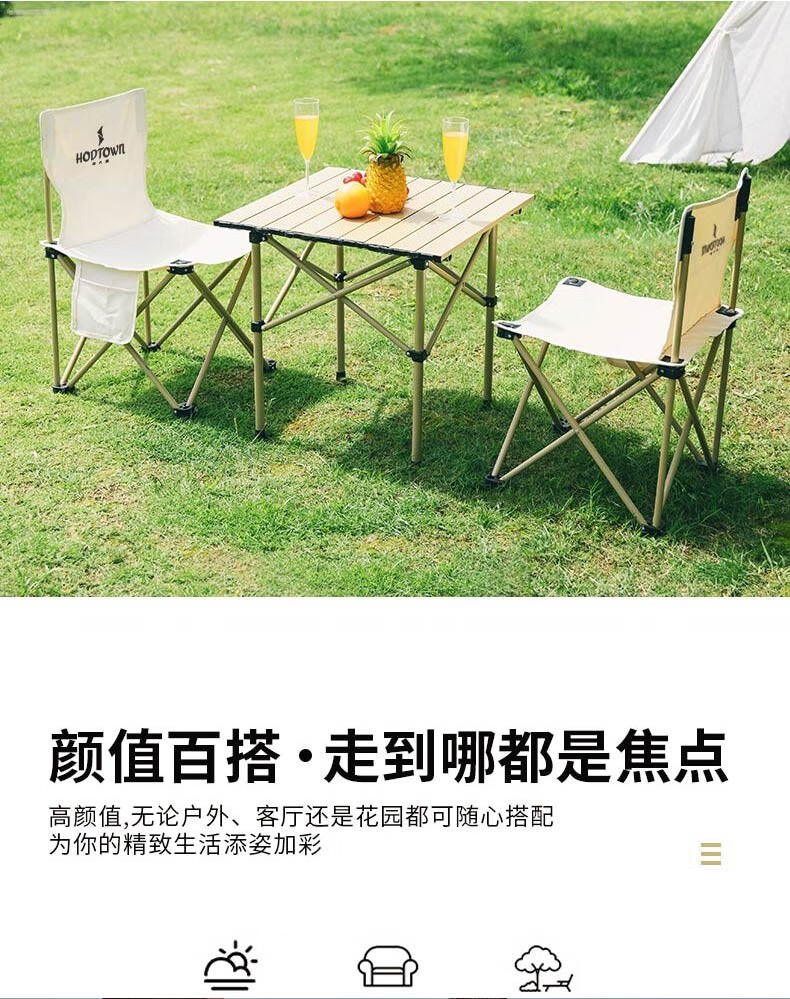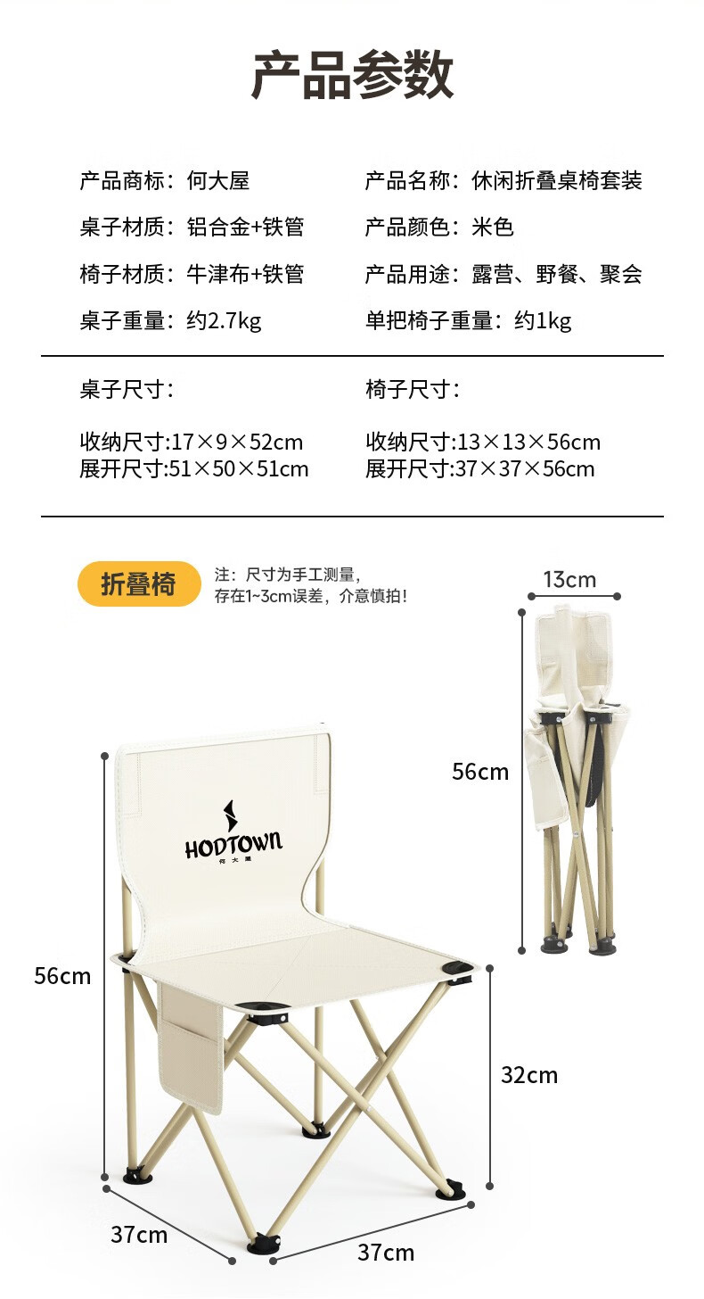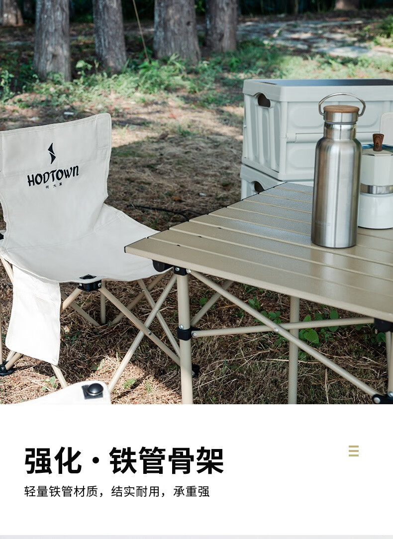 何大屋(Hodtown) 户外折叠桌便携式露营套装蛋卷桌大号米白五件套 长桌+大收纳包 休闲折叠椅HDW1512S(1把椅子)