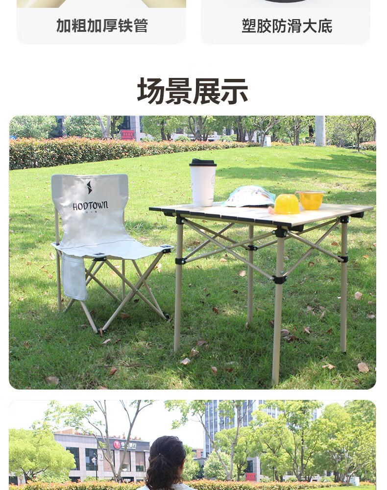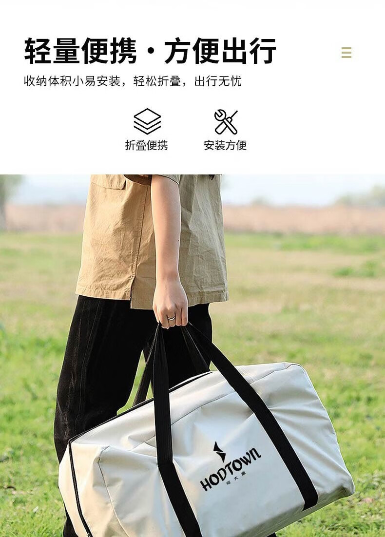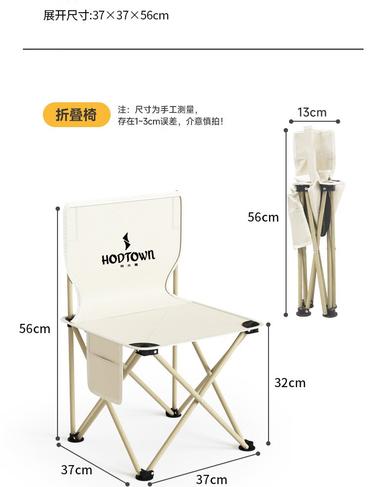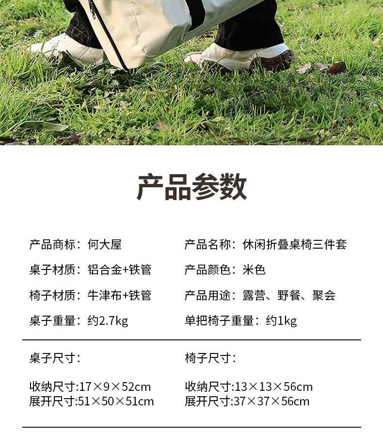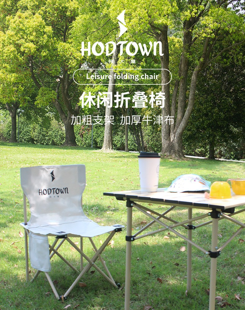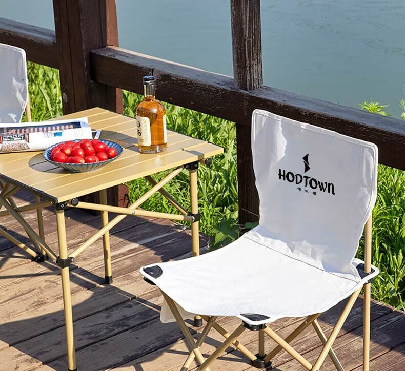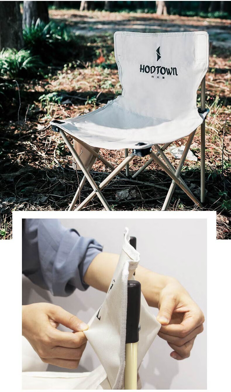 何大屋(Hodtown) 户外折叠桌便携式露营套装蛋卷桌大号米白五件套 长桌+大收纳包 休闲折叠椅HDW1512S(1把椅子)