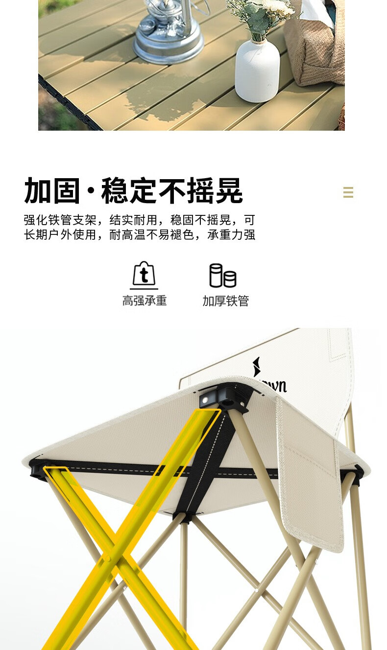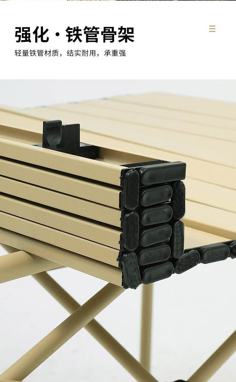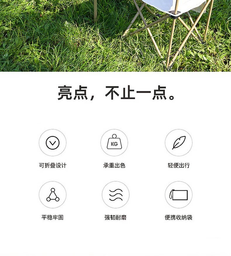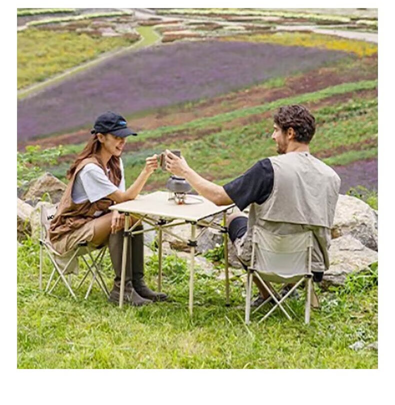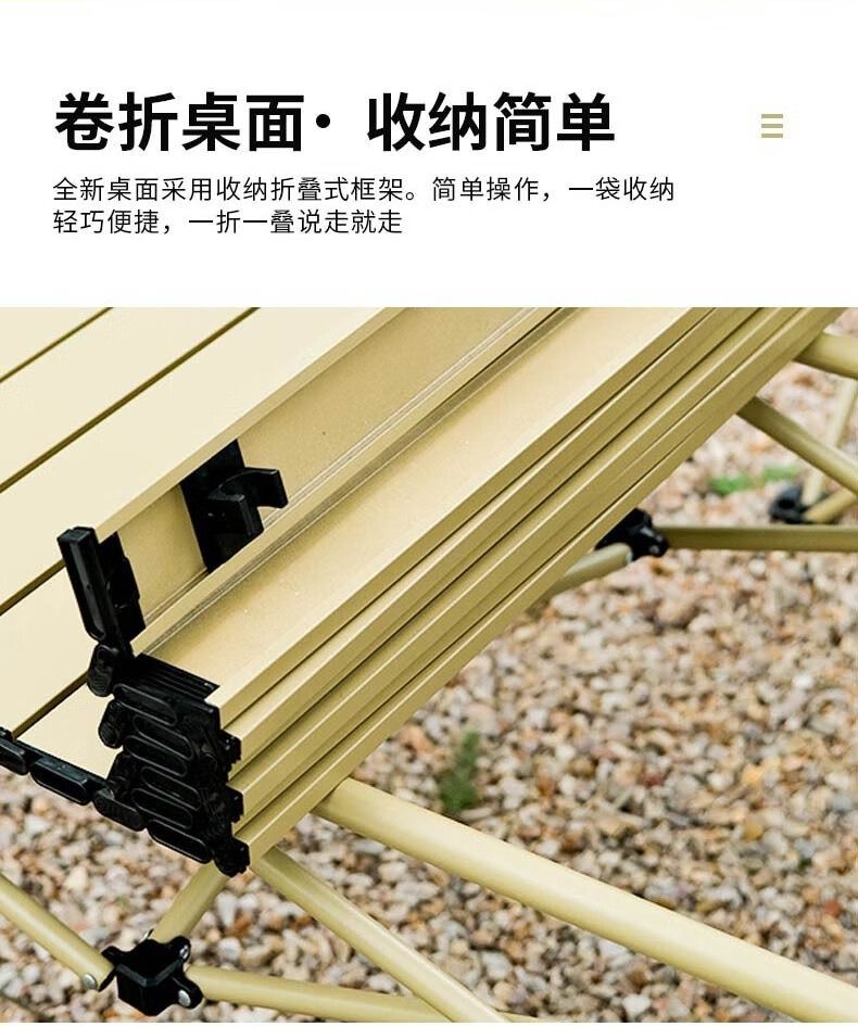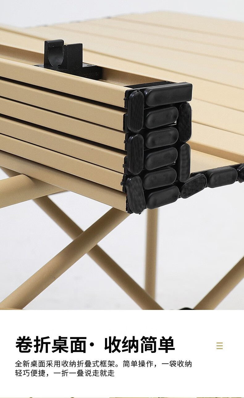 何大屋(Hodtown) 户外折叠桌便携式露营套装蛋卷桌大号米白五件套 长桌+大收纳包 休闲折叠椅HDW1512S(1把椅子)