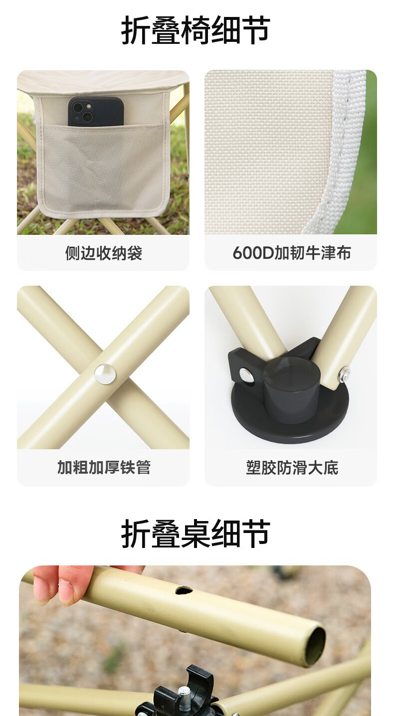 同时买了两套,一套是一桌四椅,一套是这个,收到后,虽然这个相对来说贵一点点,但是确实好一些,所以留下了这一套,放后备箱省地方,装起来也很快,比较实用