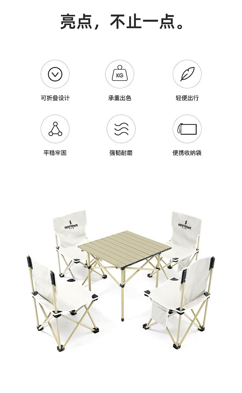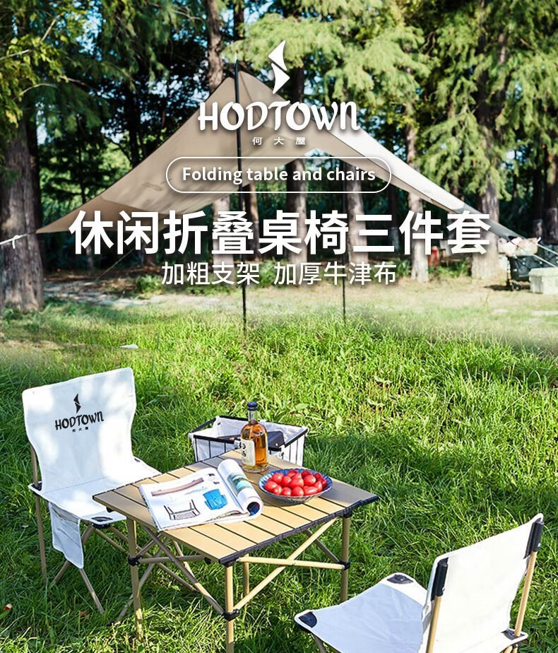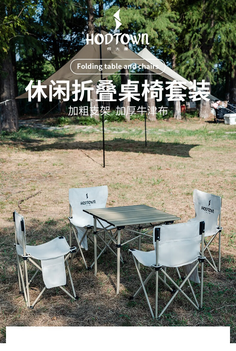 何大屋(Hodtown)户外折叠桌椅便携式露营装备蛋卷桌子野餐野营套装HDW1512 休闲折叠桌椅套装五件套【一桌四椅】