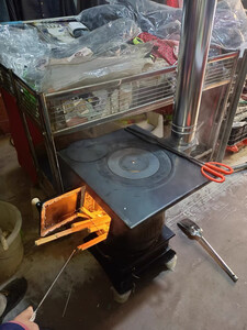 炉子材质很厚实,两个人抬的,现在还没安装,老板细心给介绍每款炉子的优点,我们这里只能烧煤蛋蛋,推荐的这款,挺实惠