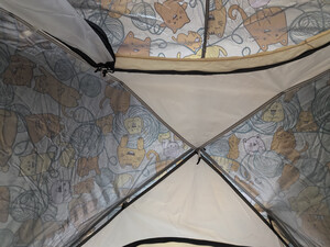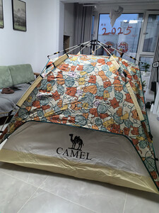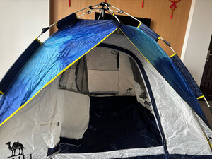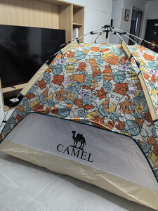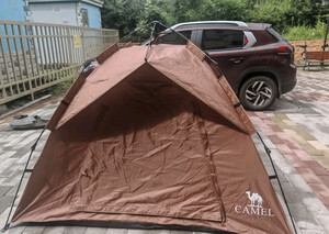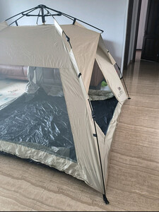 帐篷整体很满意,颜色是椰壳棕色,涂了银色防晒,夏天用很适合。纱窗设计让里面很凉快,两个人用完全没问题,性价比很高,骆驼牌子的帐篷确实不错!