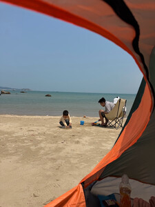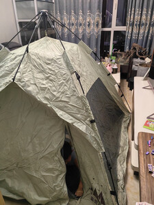带着去露营挺好的 适用场景:一家四口刚刚好不适合下雨天 容纳人数:4人 透气效果:很不错 展开类型:挺方便哦 因为下雨,气垫床打湿了