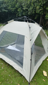 包装好,物流快,款式也很漂亮,质量也不错,满意 容纳人数:我们三大两小坐着都还挺舒服的,躺着应该3人位置 透气效果:两边可以打开门,也可以只开纱窗,另外两边也有纱窗,通风挺好的 展开类型:打开和收装都很容易 便携性能:装到收纳袋携带很方便