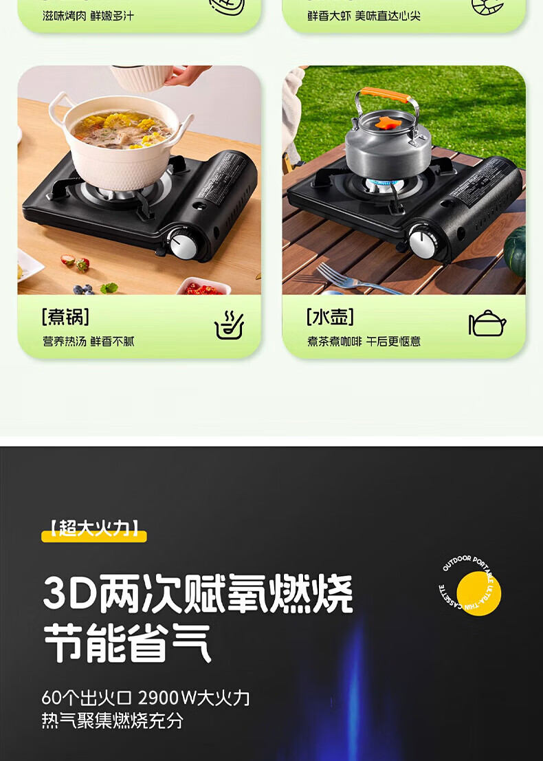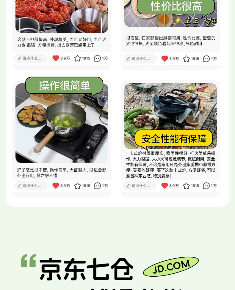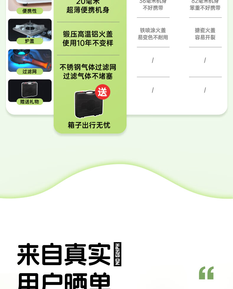 外观精美颜色比较正,小巧,火力旺盛,特别适合出去露营。 价格特别的经济实惠,用起来还安全,火力也够足,款式也很好看~值得推荐使用的,这个价格买到是比较值得的,使用效果真的很满意,携带方便 配有箱子。好评(o^^o)