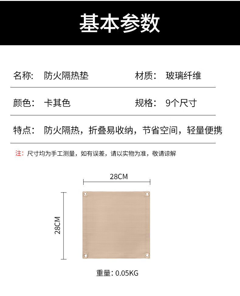 曦途(XITU)露营防火垫卡式炉隔热垫烧烤炉子户外耐高温防烫阻燃毯折叠防燃布 玻璃纤维款28x28cm