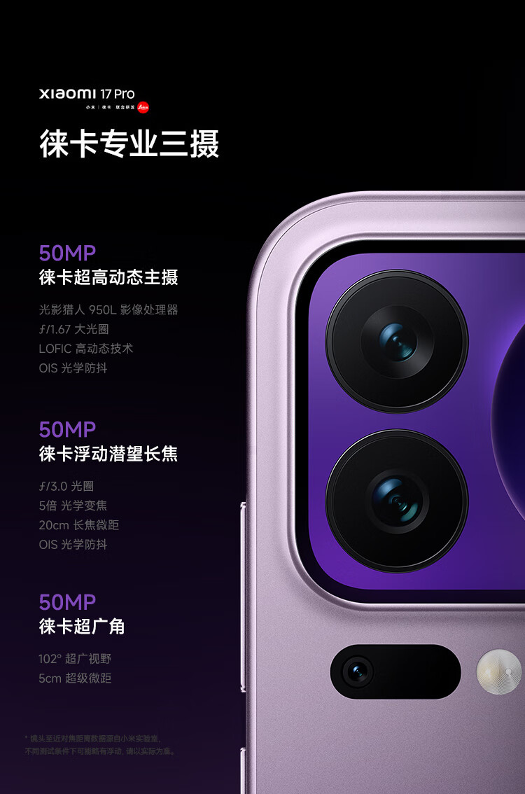 小米17Pro 妙享背屏 徕卡光影大师 第五代 骁龙8至尊版 新品5G手机 冷烟紫 16GB+1TB 官方标配