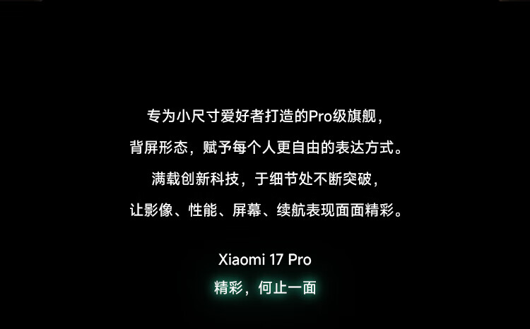 非常喜欢这款小米17pro,整体看着非常漂亮而且摸起来手感非常舒服,背面小屏幕的设计也很巧妙,作为小米旗舰产品使用起来也非常流畅,非常的不错 。