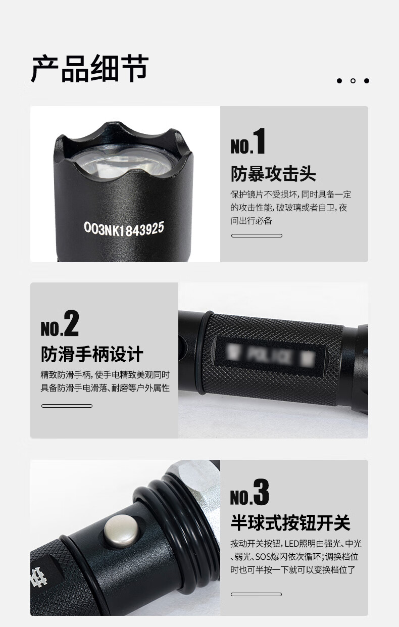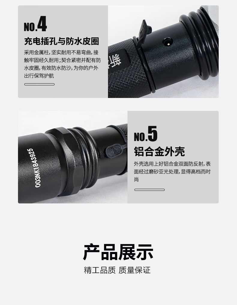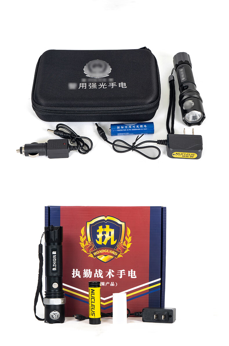 oeny新标公发手电筒 防暴检查安保巡逻铝合金 新三代充电强光防暴手电 强光手电套装