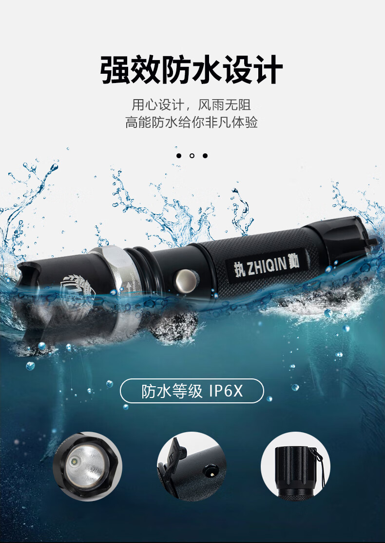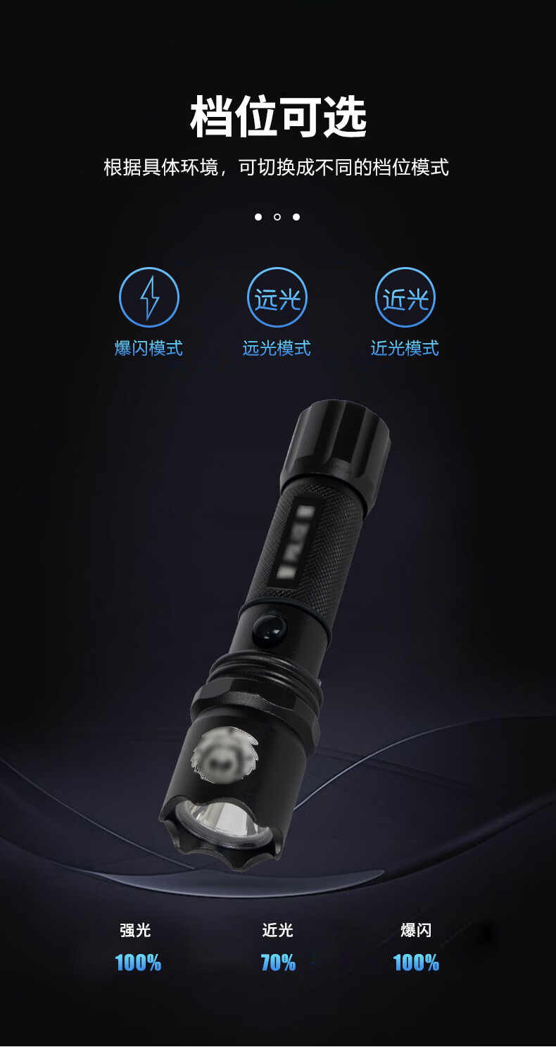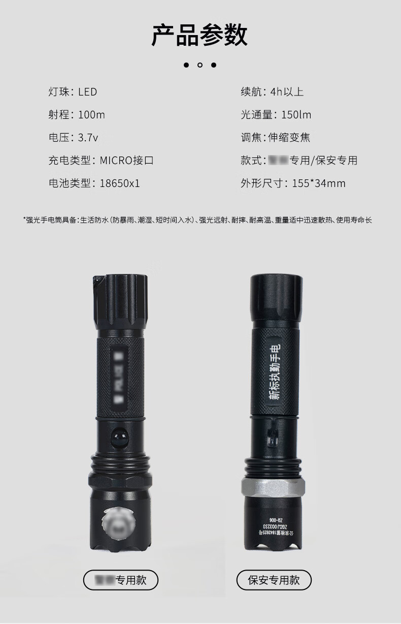 允腾 强光手电筒 保安执勤巡逻超长续航可充电远射防暴战术手电探照灯 保安执勤手电