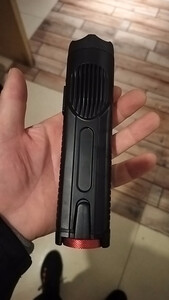 设计非常不错,可以装载2颗18650电池,电量就非常足,根本不担心稍微使用就没电了。功率大,自己玩过的8款短电里功率最大的,这点非常满意。着重要夸一下的是2个按键的设计逻辑,亮灯健按4下,led指示灯红色,然后按放电键才会放电,这个设计逻辑太棒了,防止误触放电,放在包里太安心了。