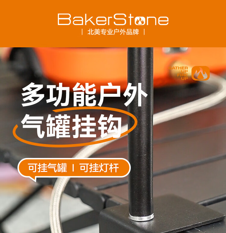 这个小挂钩设计得很巧妙,挂气罐特别稳,露营时用起来顺手。