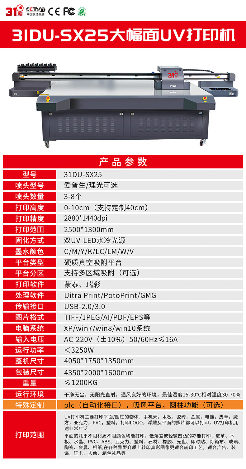 31DU-SX25 UV打印机一台 墨水一组 配套软件及配件一套