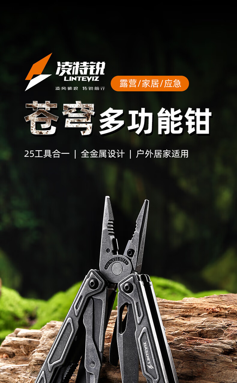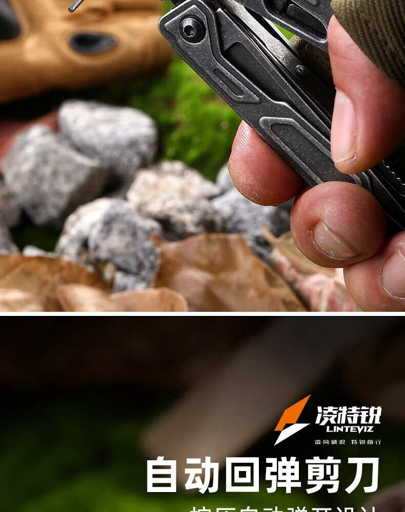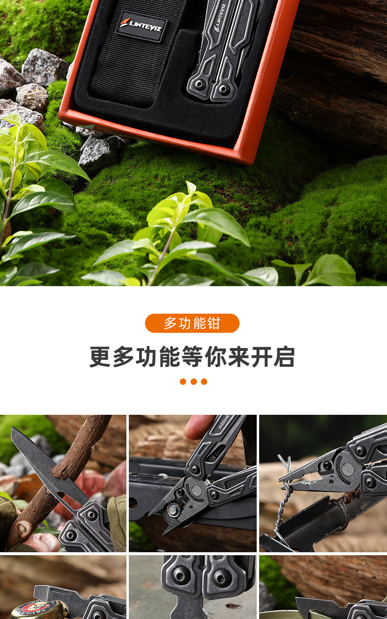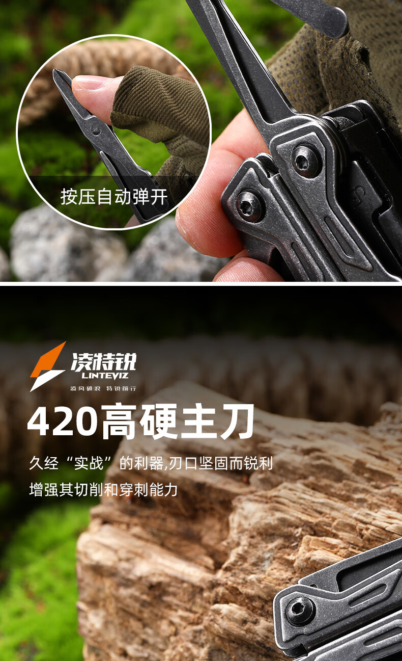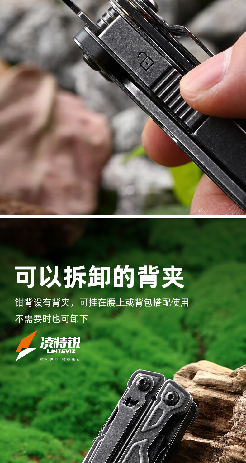 凌特锐高品质精冲多功能钳户外露营探险车载居家便携可折叠EDC万用钳 发黑石洗
