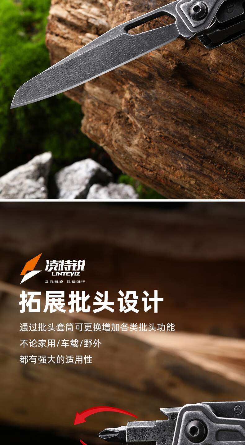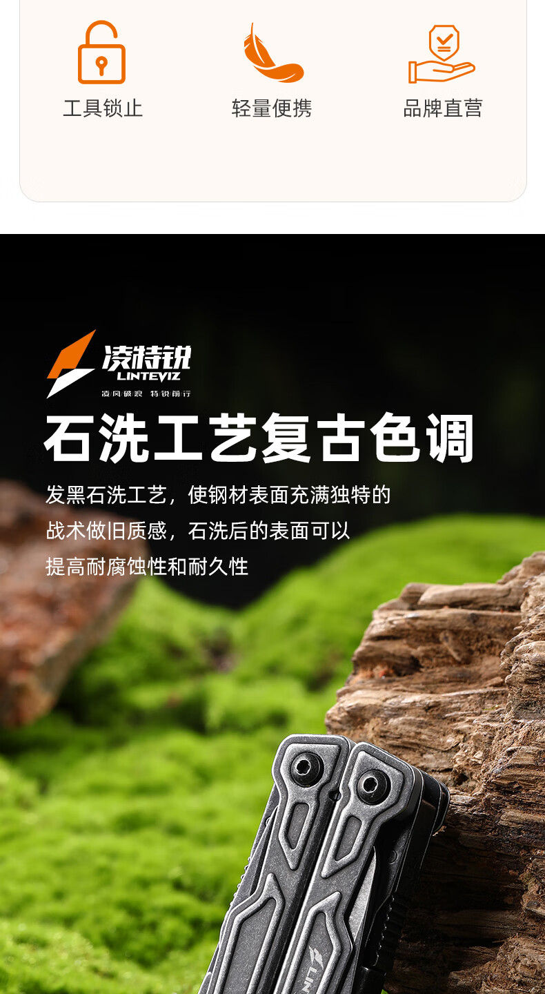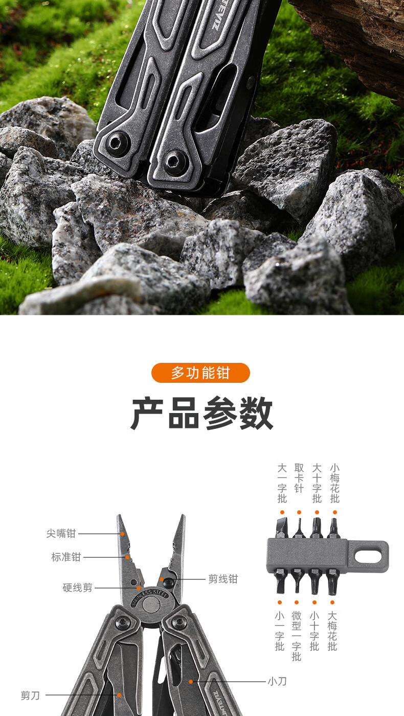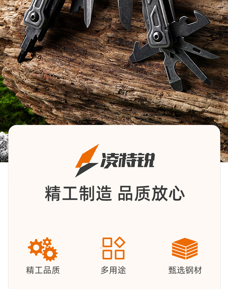 凌特锐高品质精冲多功能钳户外露营探险车载居家便携可折叠EDC万用钳 发黑石洗