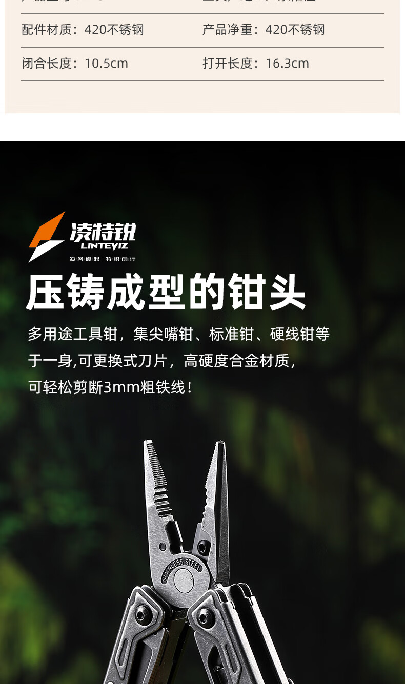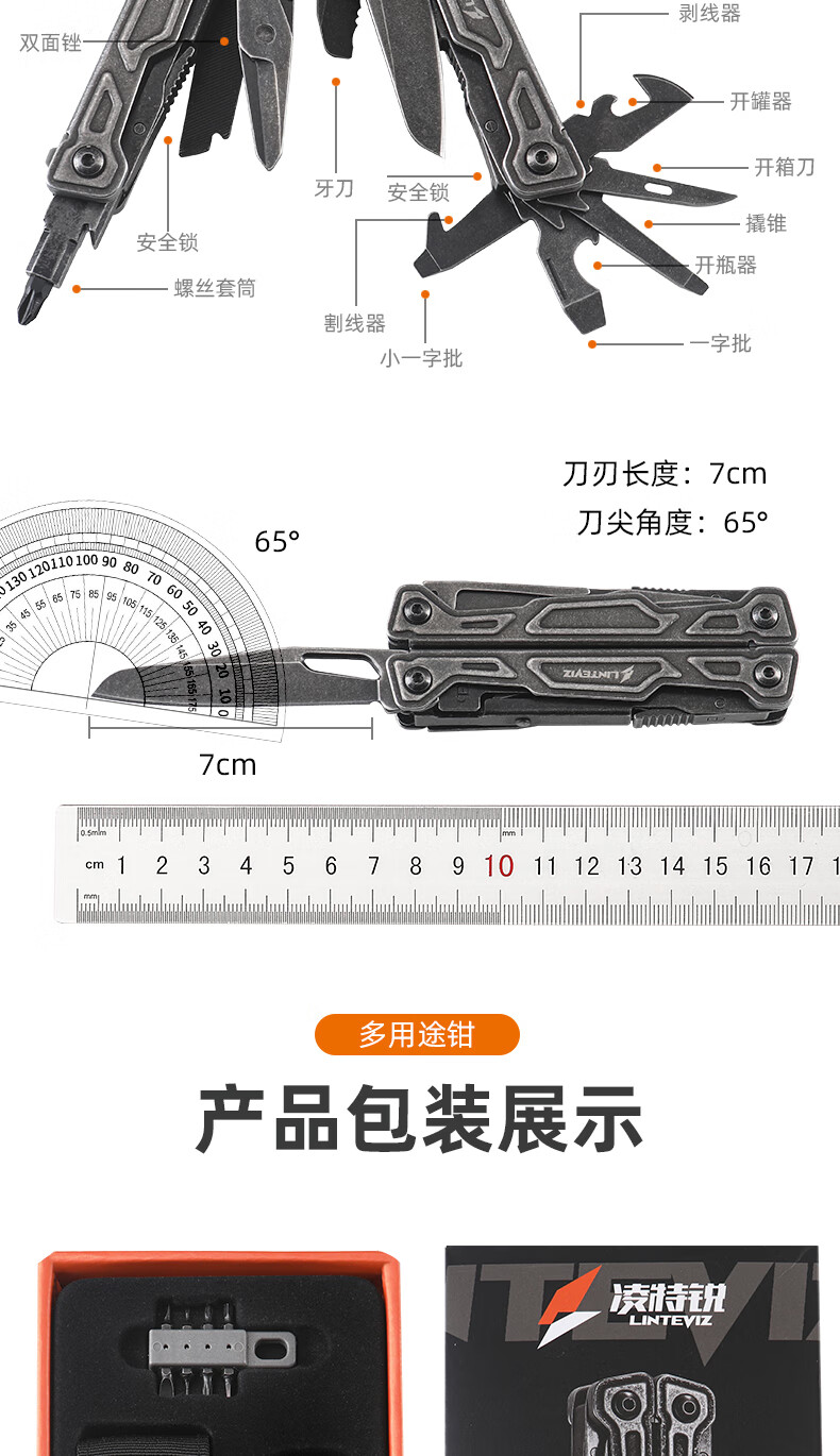 凌特锐多功能便携折叠钳工刀户外应急救援热卖款工具组合户外随身装备 喷砂镜光 打开尺寸: 17.5cm