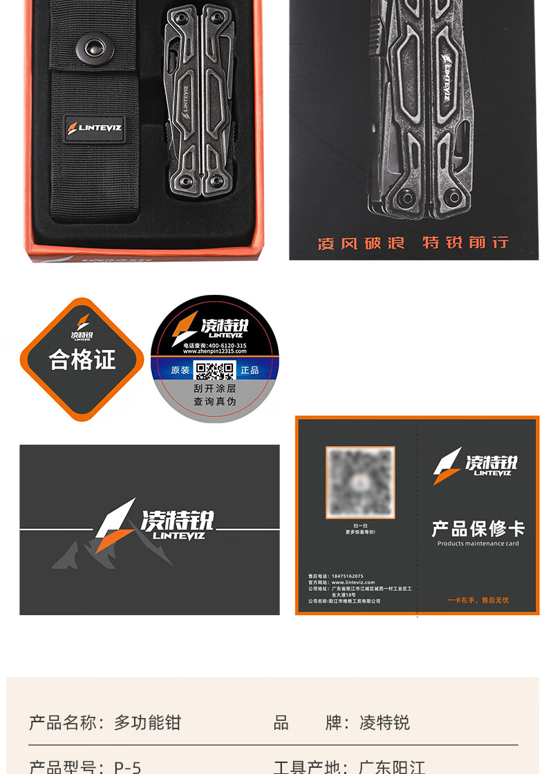 合格证*1,说明书*1,保修卡*1,多功能钳*1,批头条*1,牛津袋*1,彩盒*1