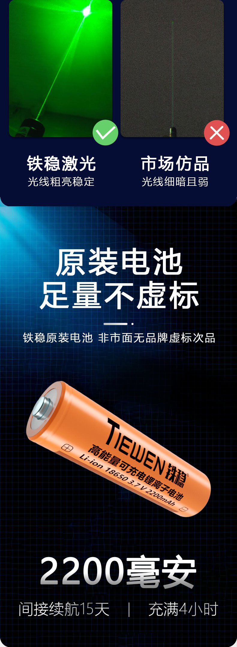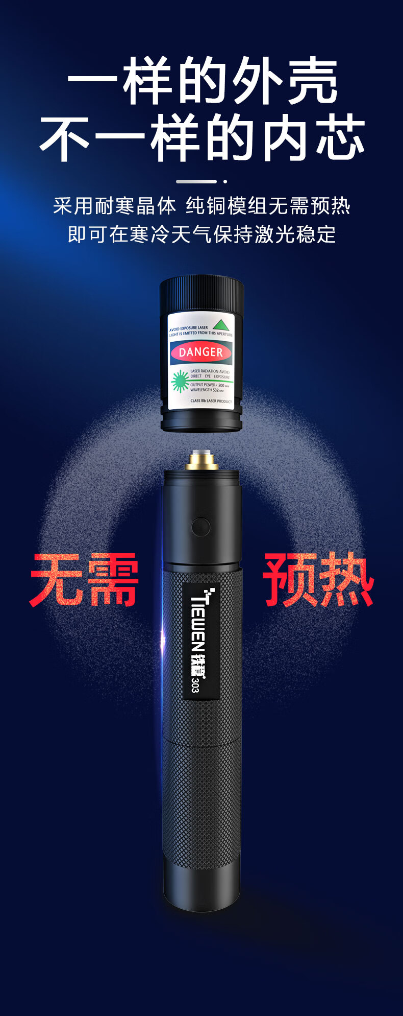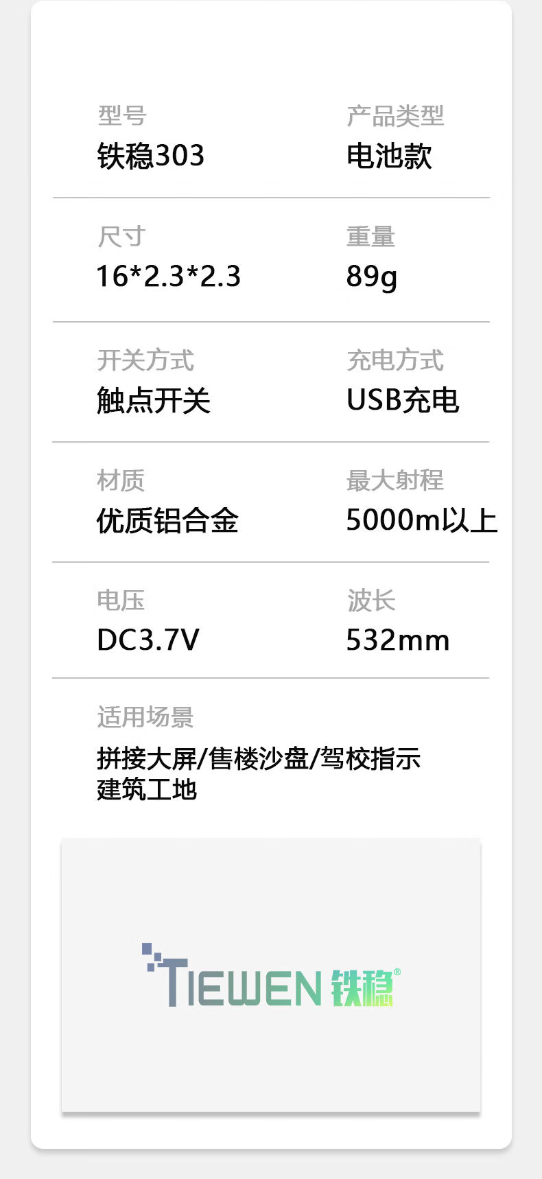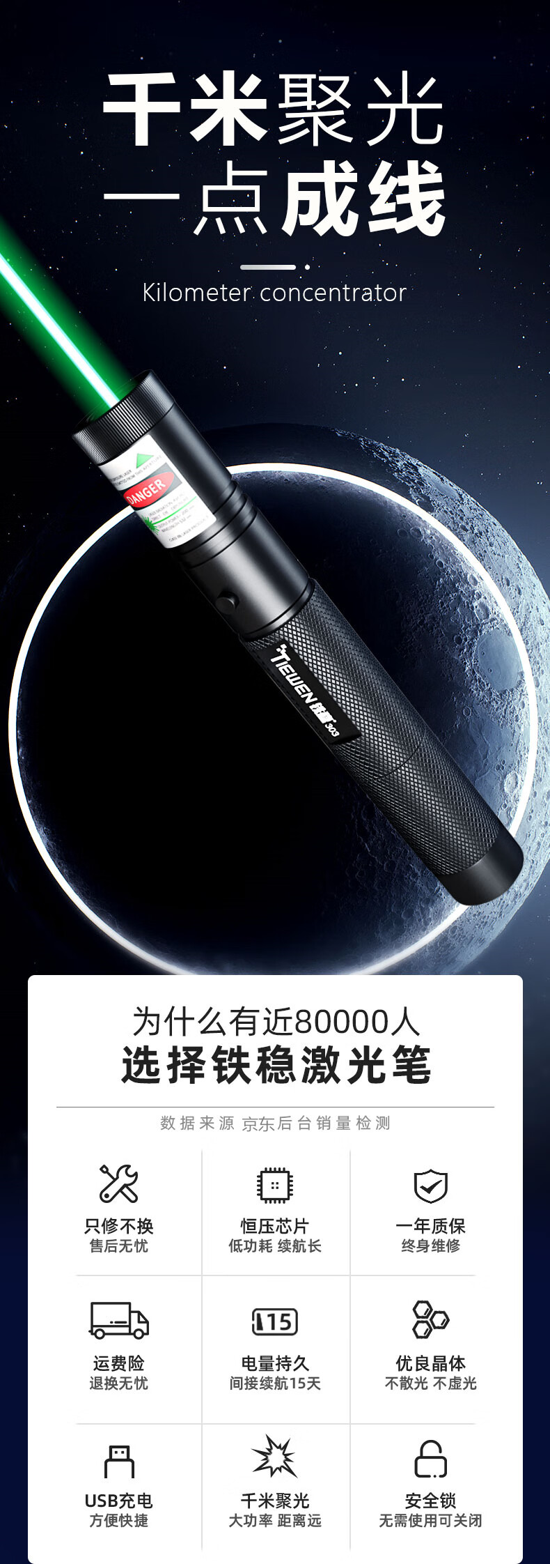 铁稳303大功率绿光激光手电USB充电远射激光笔灯售楼沙盘户外高亮指星 二电一充套餐