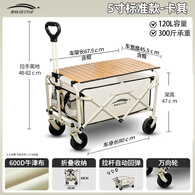 北岳露营车户外推车野餐车儿童可躺露营装备折叠摆摊营地车小买菜车 5寸便携加固款+桌板-云峰白