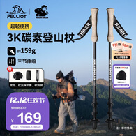伯希和HIKER碳素登山杖3k超轻防滑伸缩折叠拐棍爬山手杖16403602黑色