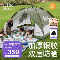 伯希和(Pelliot)速开帐篷户外露营防雨过夜银胶防晒天幕雨棚遮阳棚16502701绿色